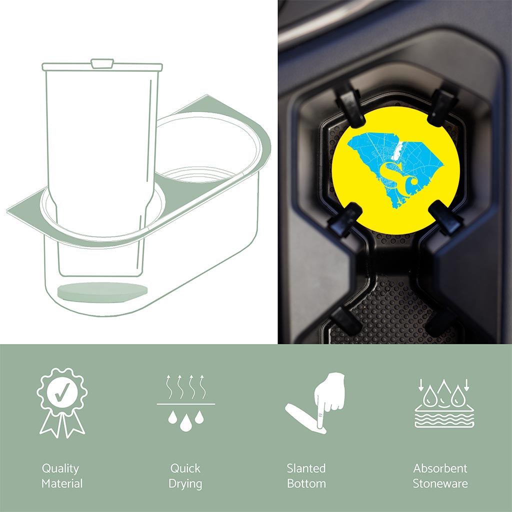 Car coasters are that little accessory that you didn’t know you needed but now consider an essential. Your cupholders are protected and kept clean by absorbing drips from your morning coffee to sticky juice boxes. The strategic divot edge allows you to easily pop it out and wipe clean. No more grime stuck in the cupholder abyss. While car coasters are wonderfully utilitarian, they also inject a little personality and design into the space you spend so much time in. Order an assortment to mix and match to the season or newest trends.