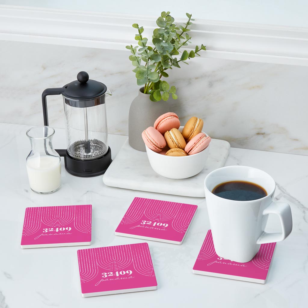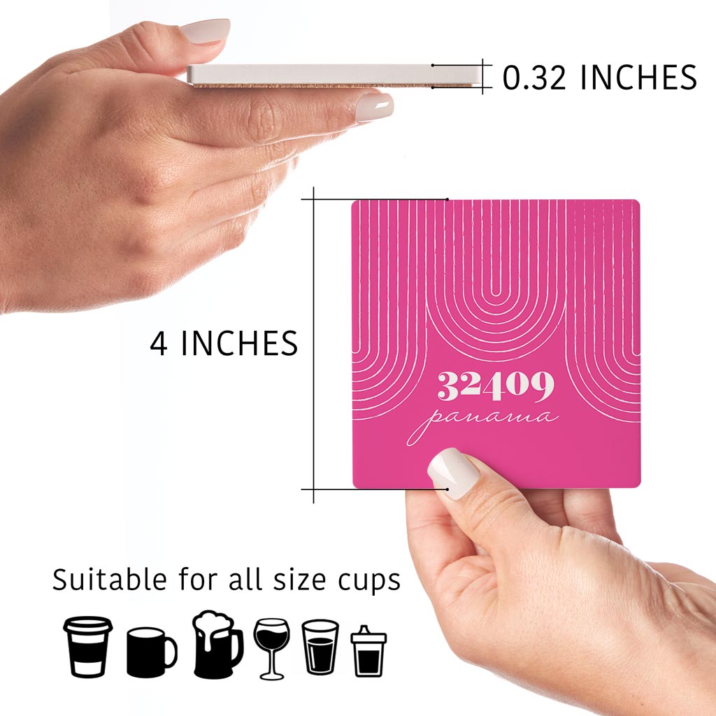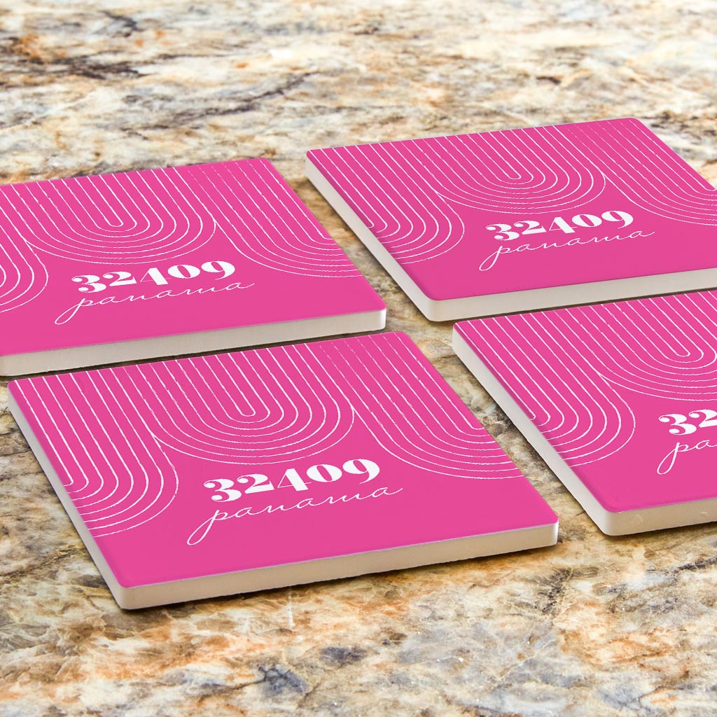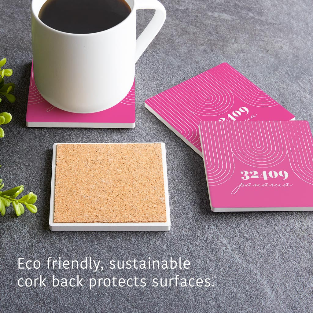 Bright Modern City Zip On Pink Florida Panama | Absorbent Coasters | Set of 4 | Min 2