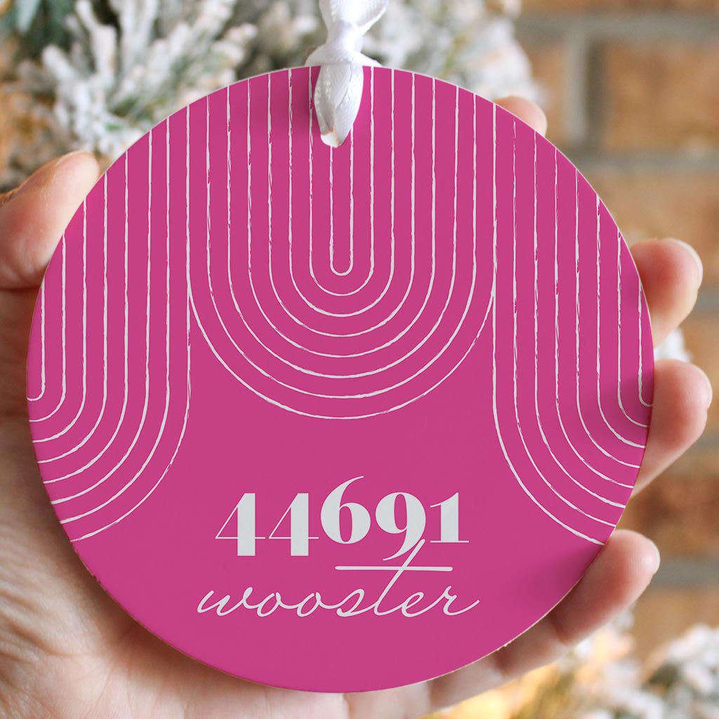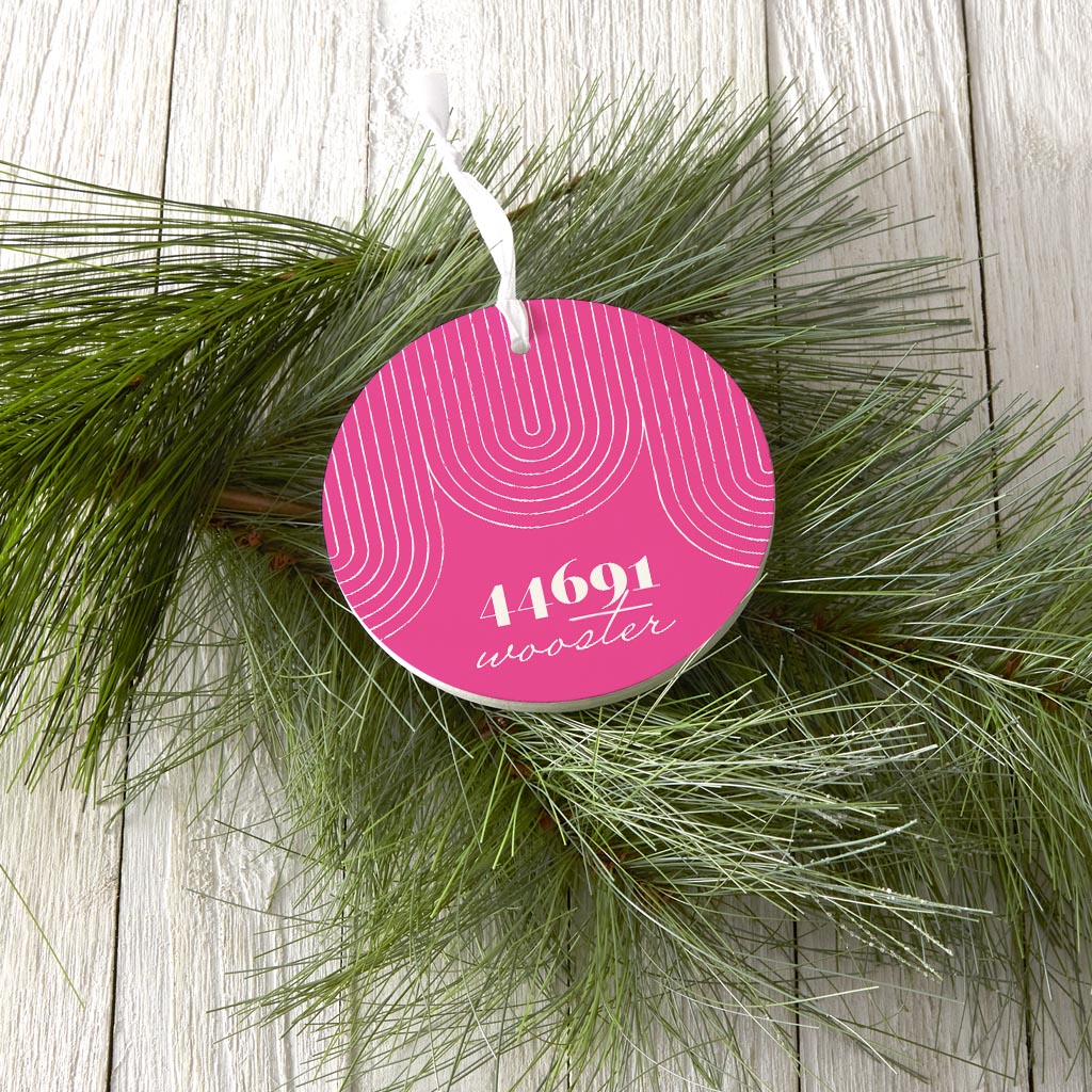 Bright Modern City Zip On Pink Ohio Wooster | Wood Ornament | Eaches | Min 6