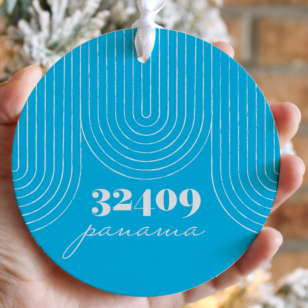Bright Modern City Zip On Teal Florida Panama | Wood Ornament | Eaches | Min 6