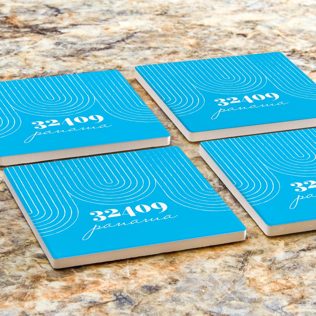 Bright Modern City Zip On Teal Florida Panama | Absorbent Coasters | Set of 4 | Min 2