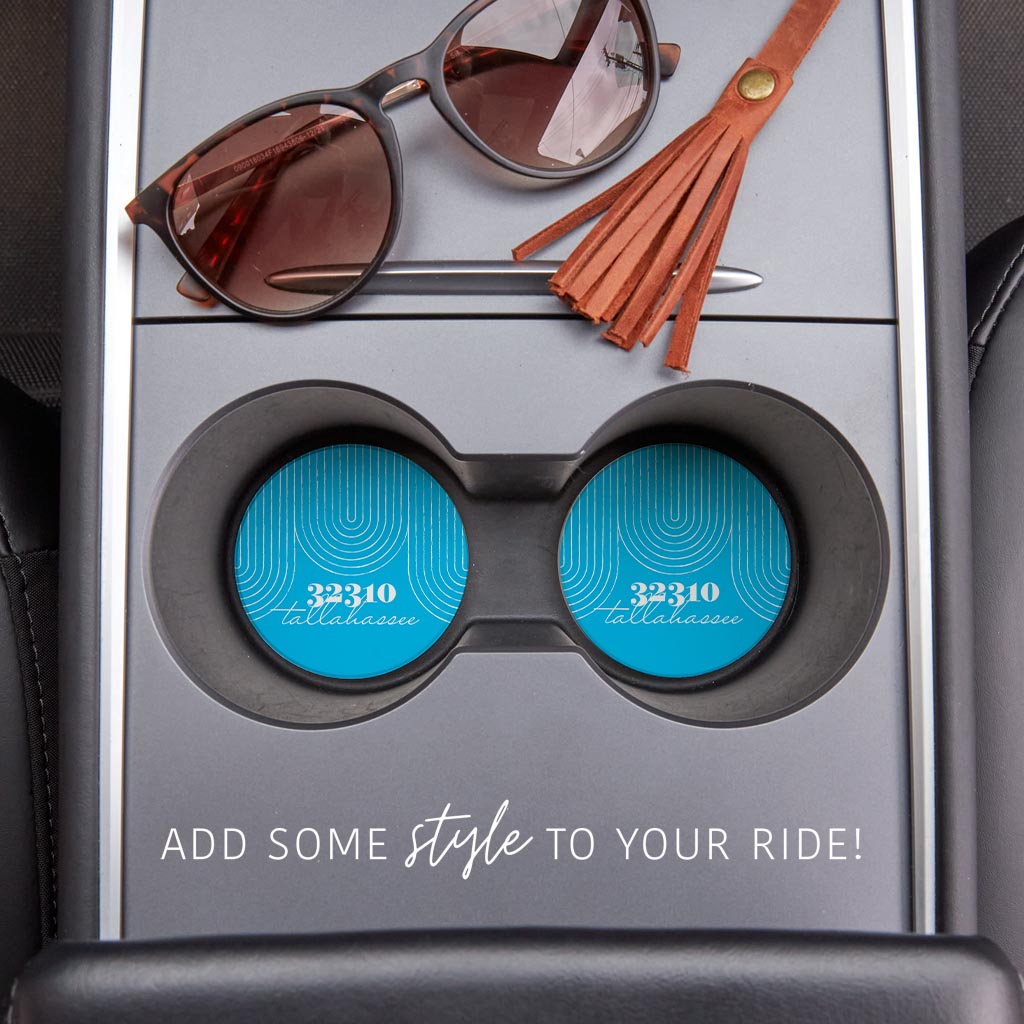Bright Modern City Zip On Teal Florida Tallahassee | Absorbent Car Coasters | Set of 2 | Min 4