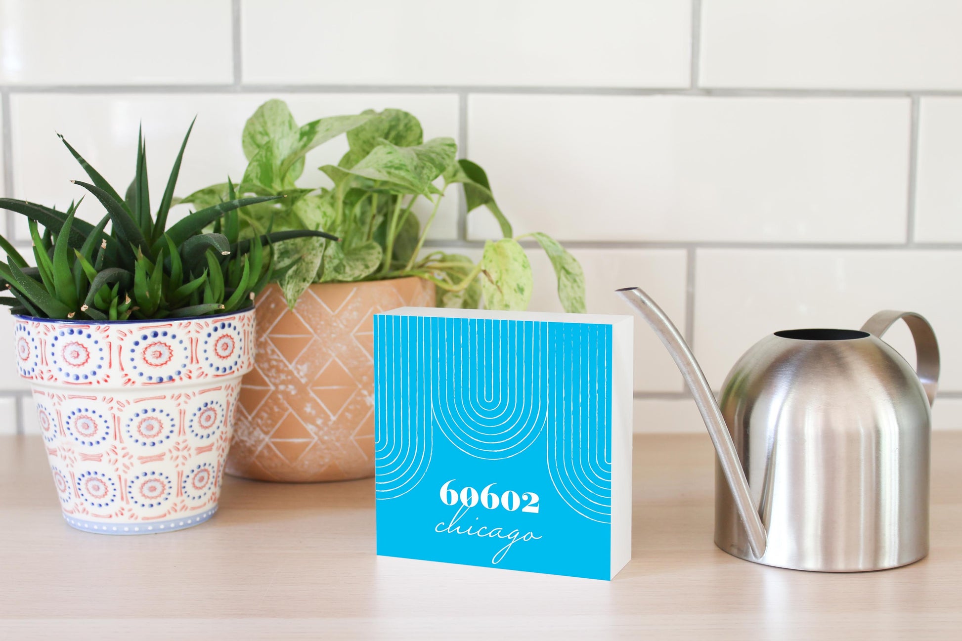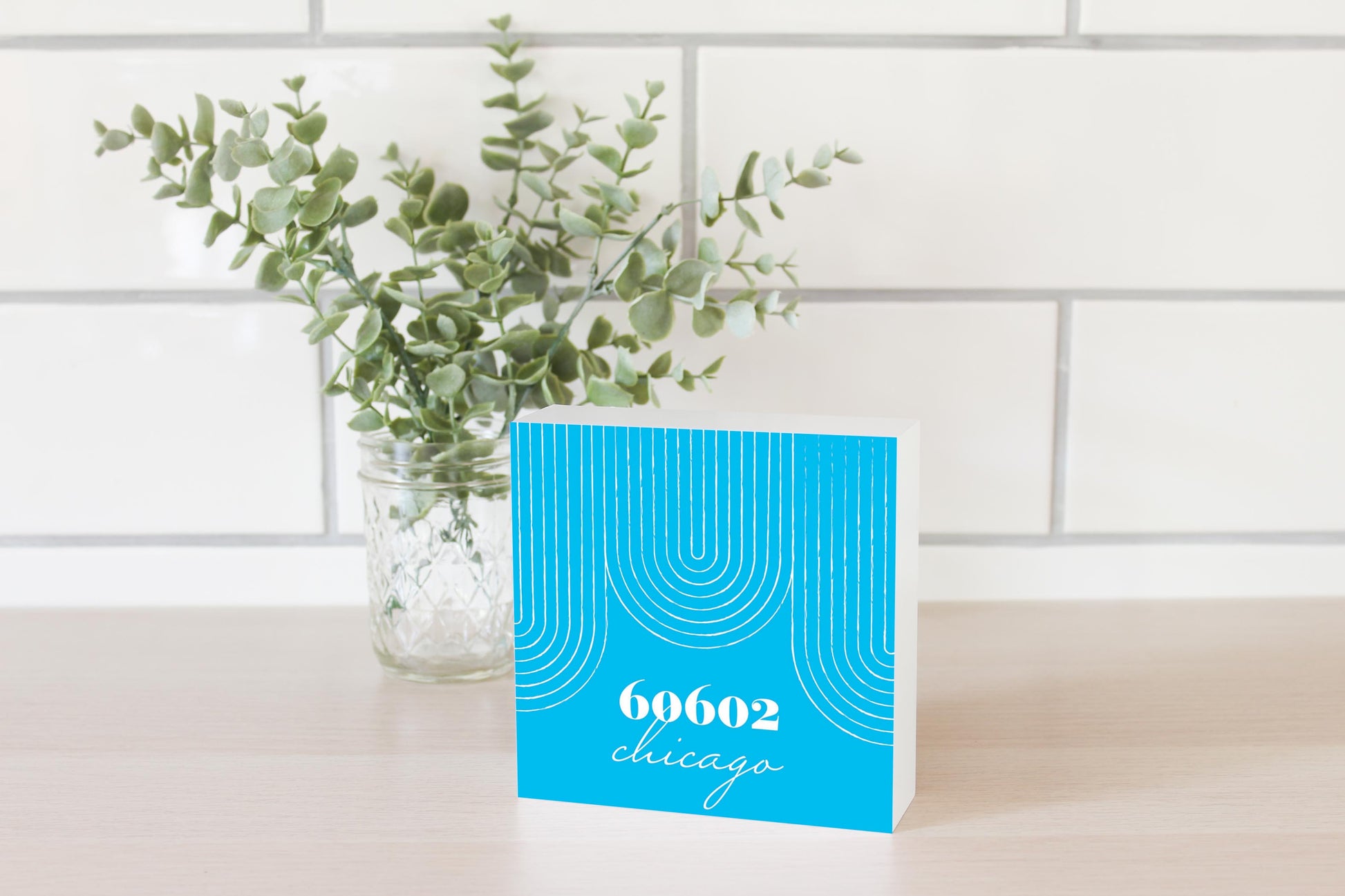 Bright Modern City Zip On Teal Illinois Chicago | Wood Block | Eaches | Min 4