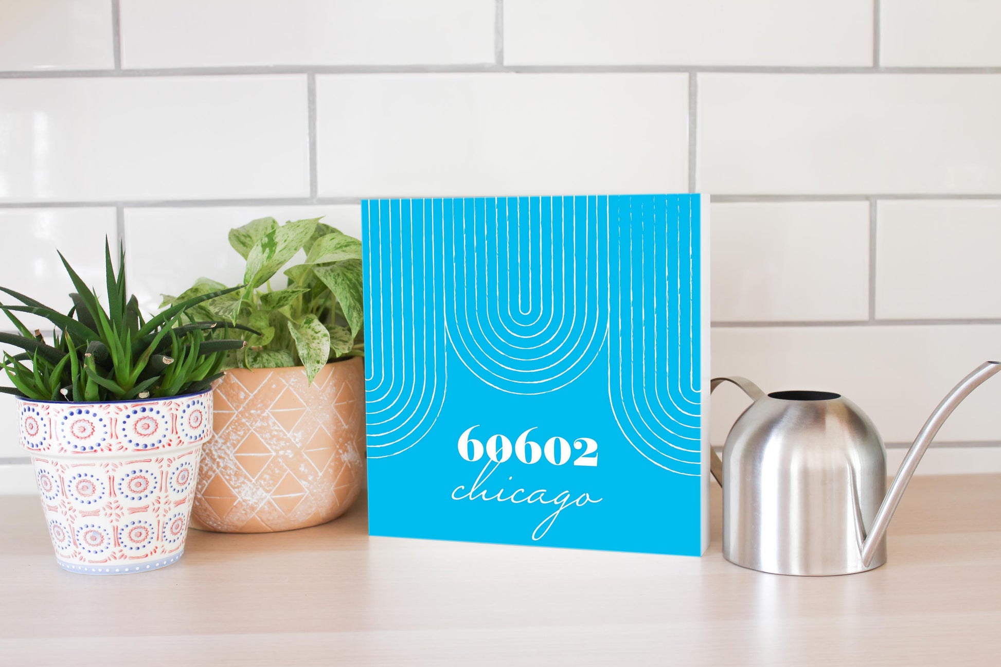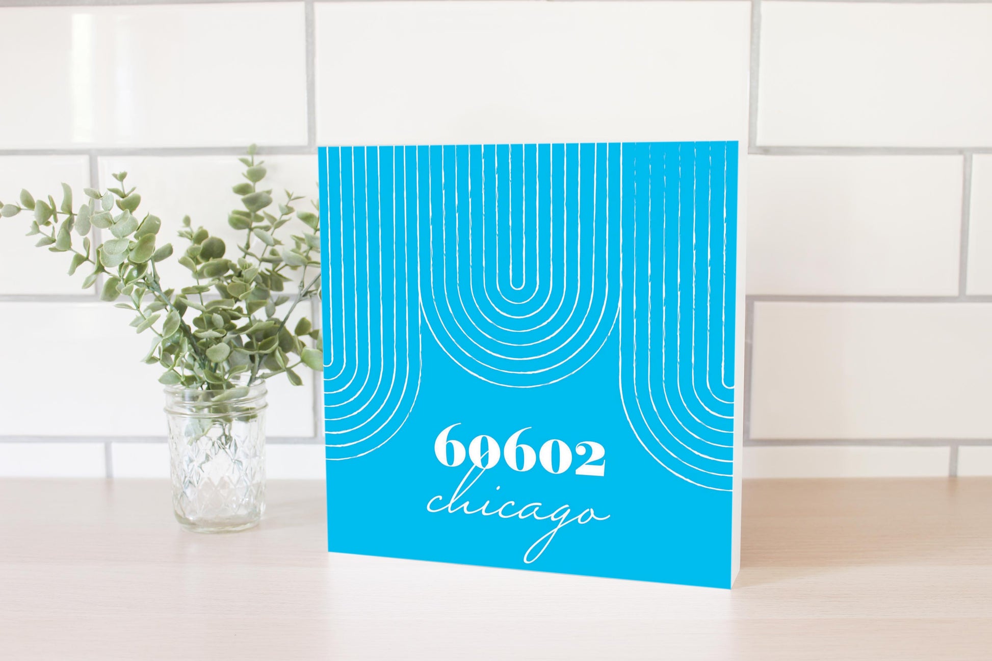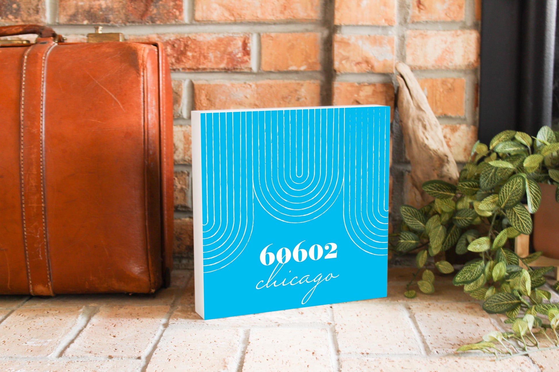 Bright Modern City Zip On Teal Illinois Chicago | Wood Block | Eaches | Min 2