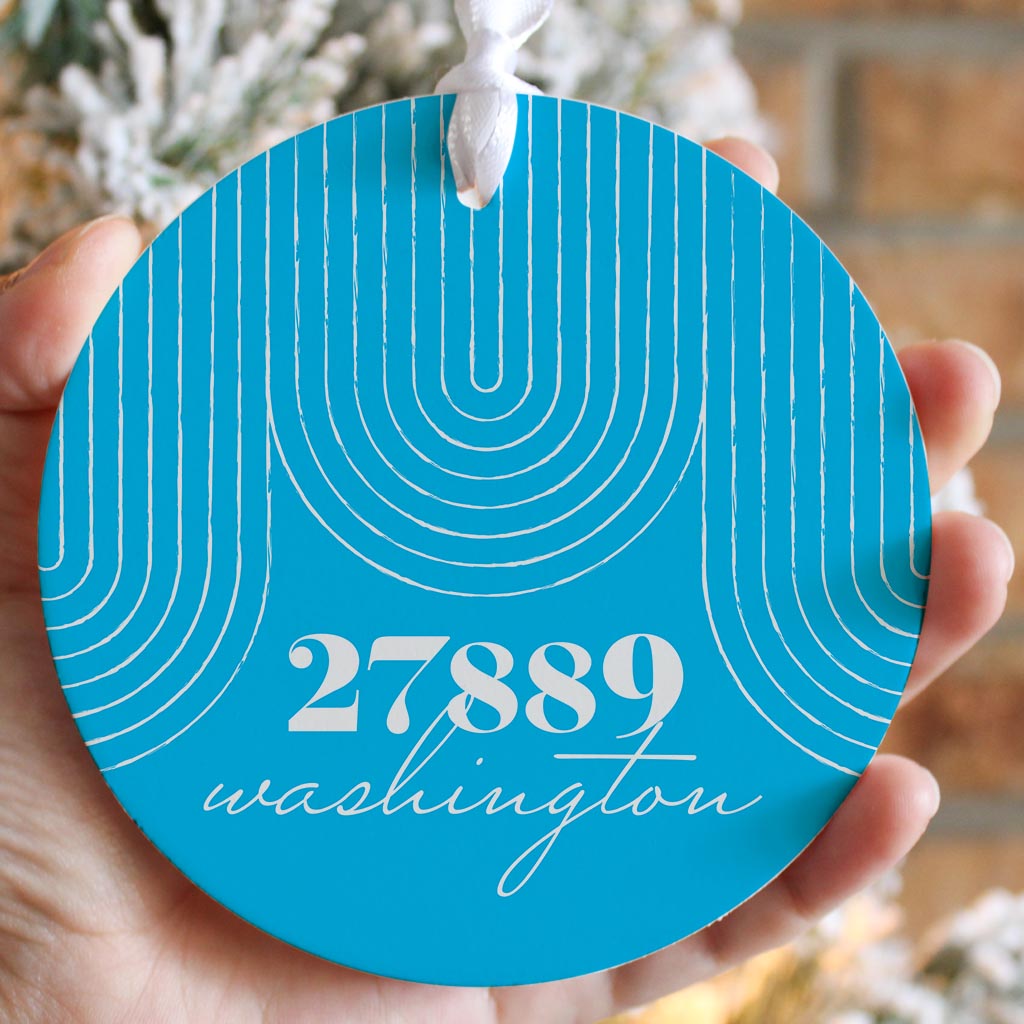 Bright Modern City Zip On Teal North Carolina Washington | Wood Ornament | Eaches | Min 6