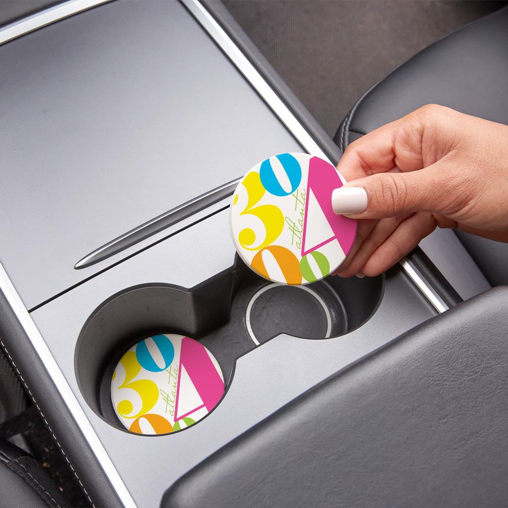 Car coasters are that little accessory that you didn’t know you needed but now consider an essential. Your cupholders are protected and kept clean by absorbing drips from your morning coffee to sticky juice boxes. The strategic divot edge allows you to easily pop it out and wipe clean. No more grime stuck in the cupholder abyss. While car coasters are wonderfully utilitarian, they also inject a little personality and design into the space you spend so much time in. Order a few to mix and match to your mood, season, or newest trends. We love when function and design coincide!
