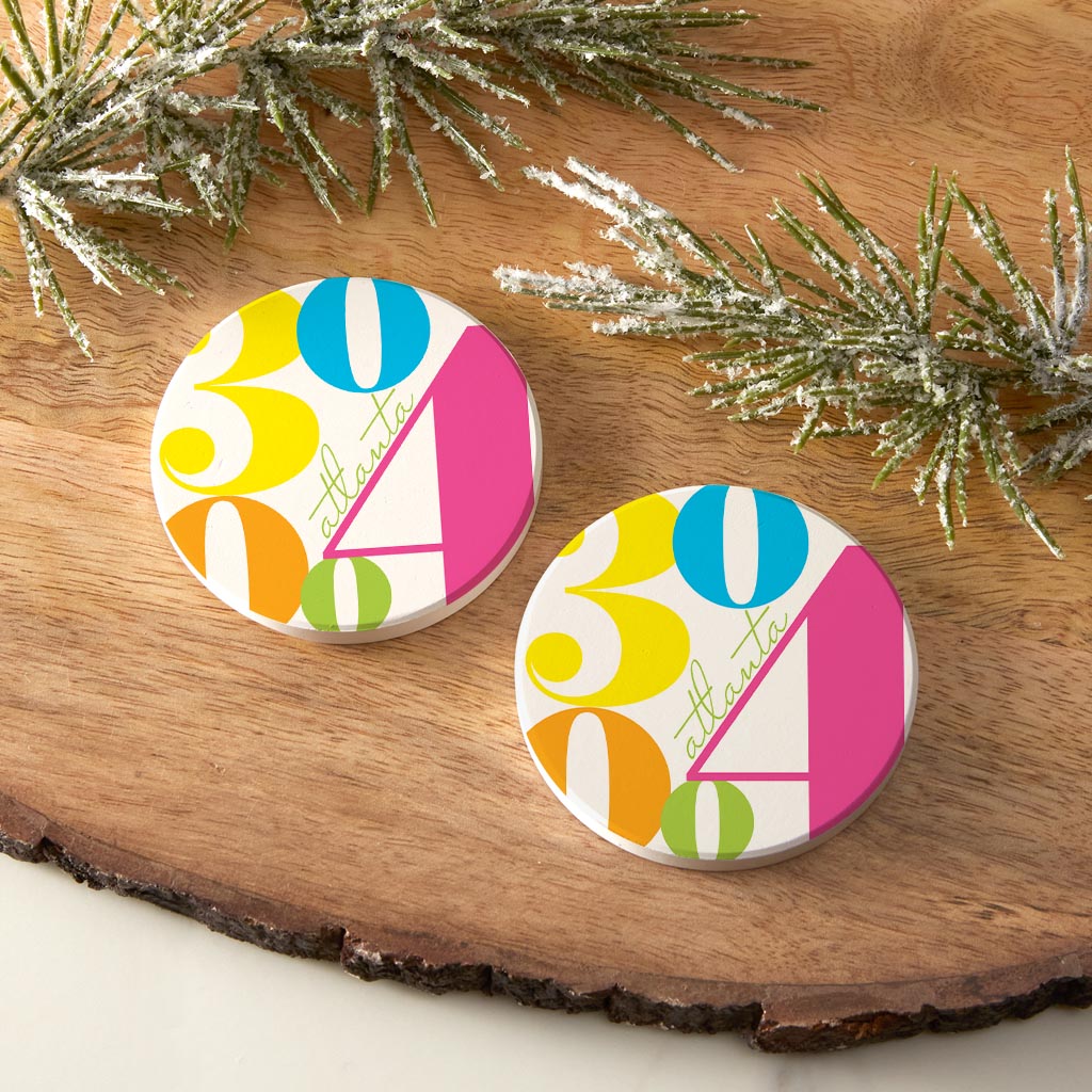 Bright Modern Color Block City Zip Georgia Atlanta | Absorbent Car Coasters | Set of 2 | Min 4