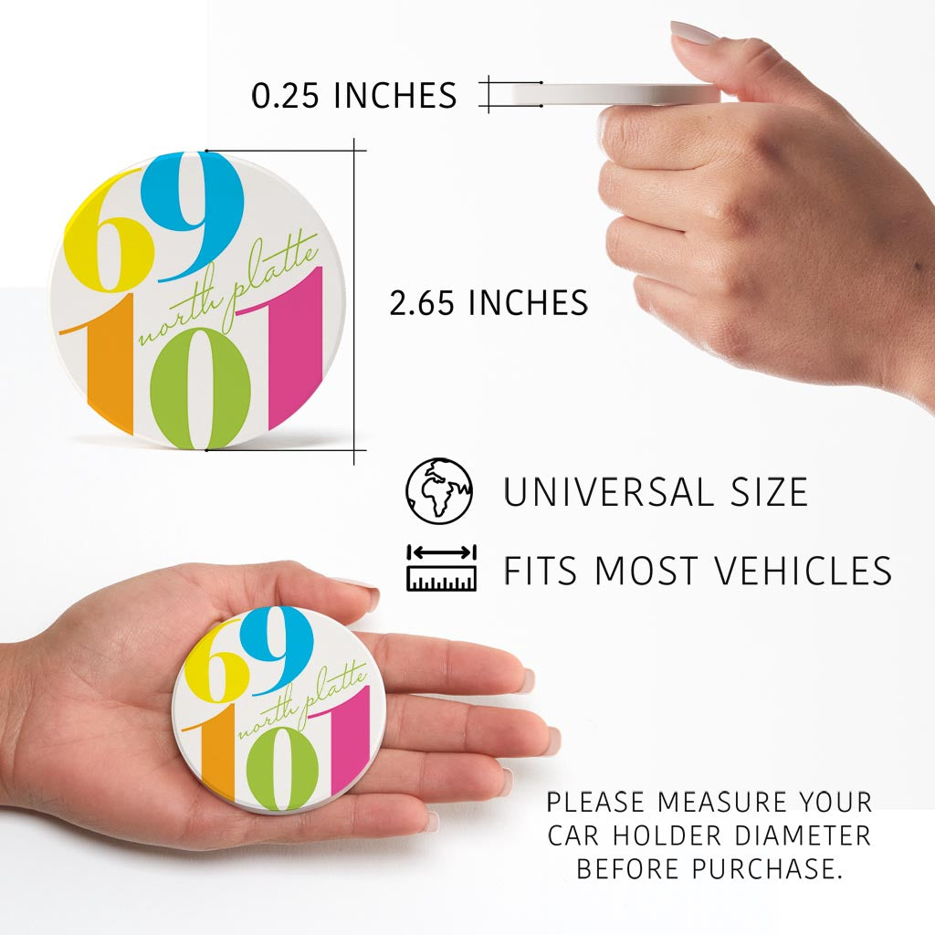 Bright Modern Color Block City Zip Nebraska North Platte | Absorbent Car Coasters | Set of 2 | Min 4
