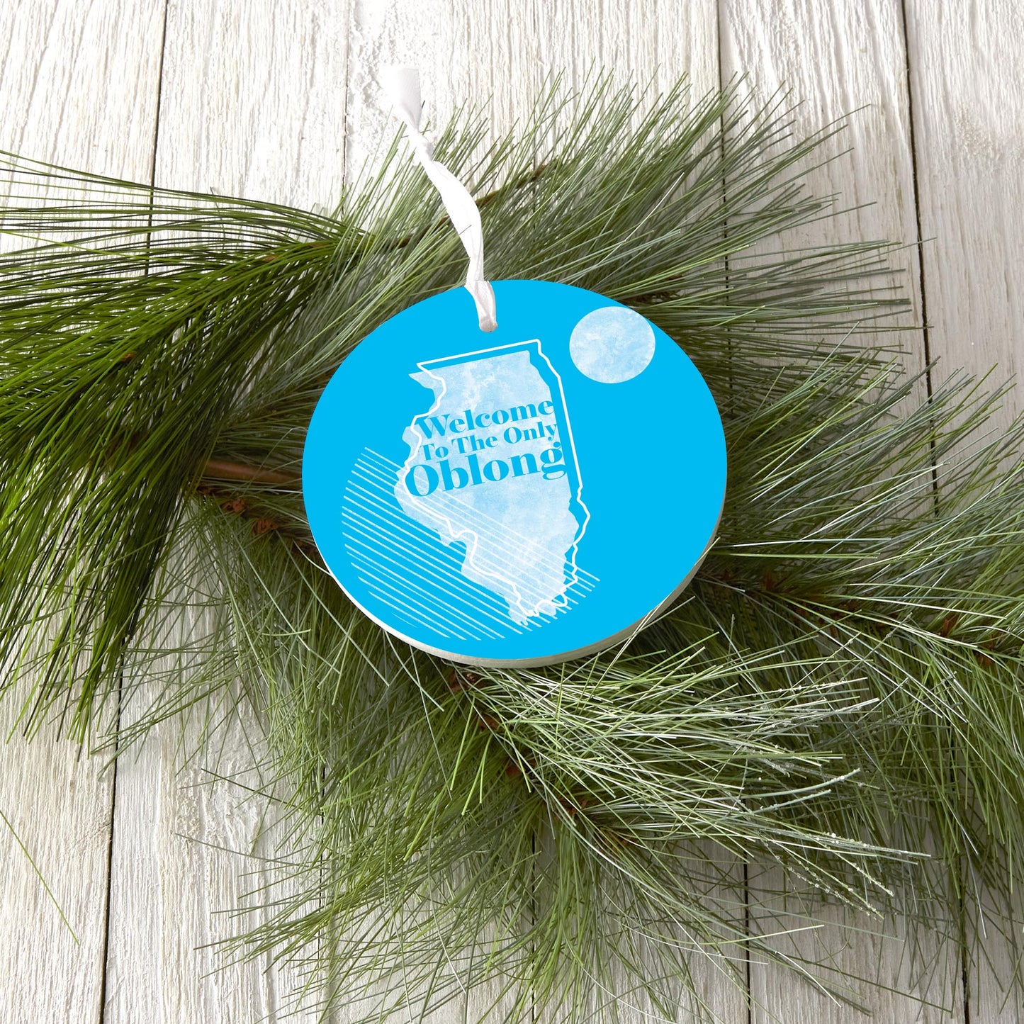 Bright Modern Geometric Oblong Illinois| Wood Ornament | Eaches | Min 6