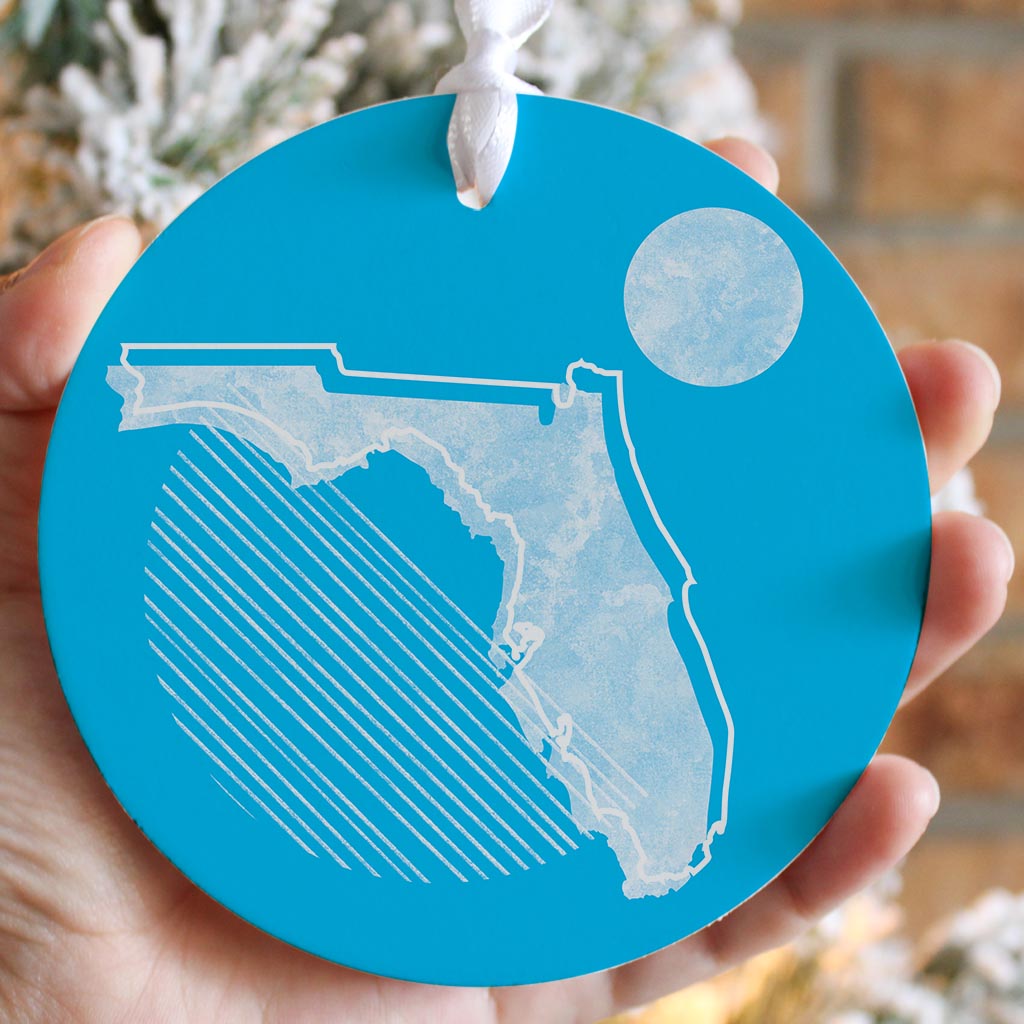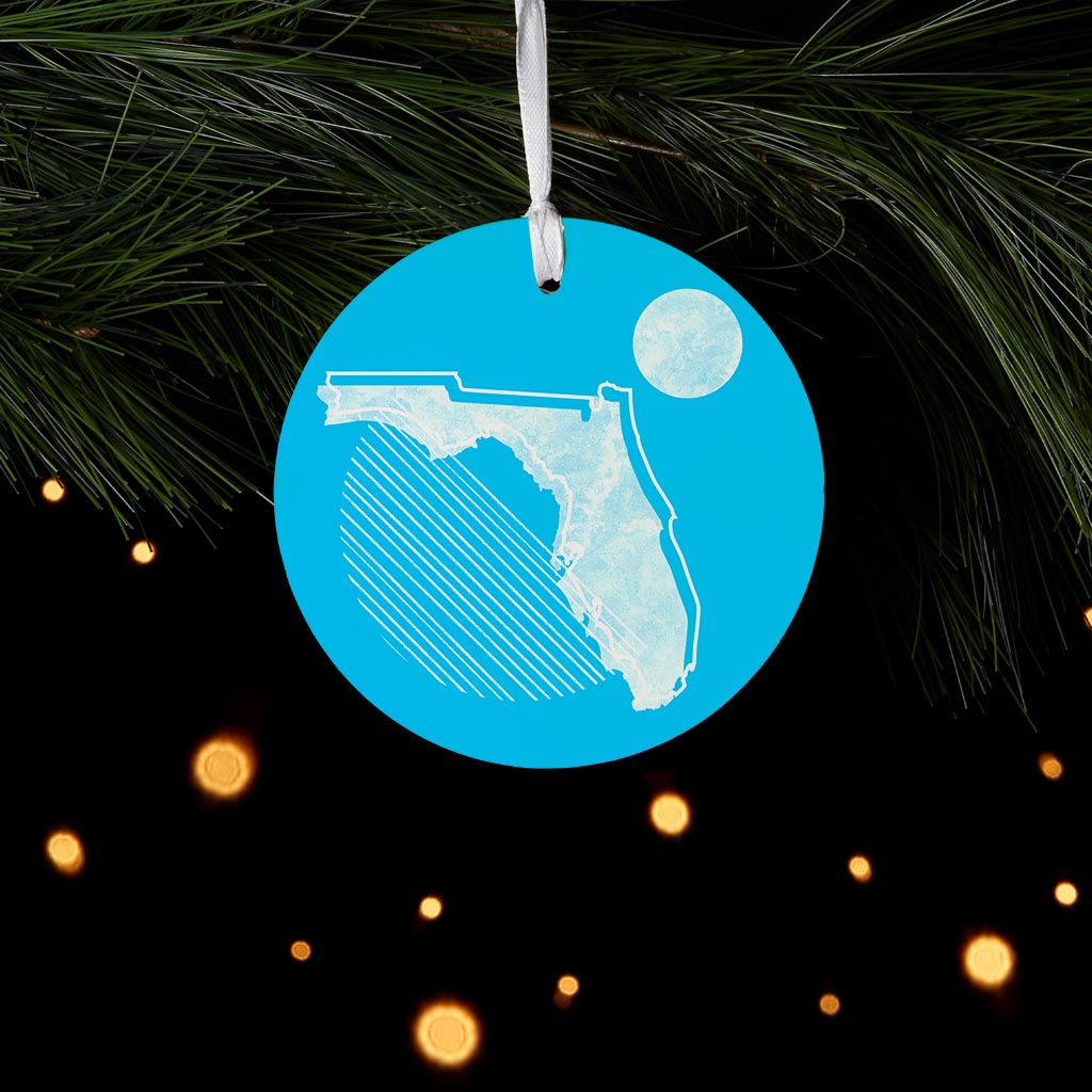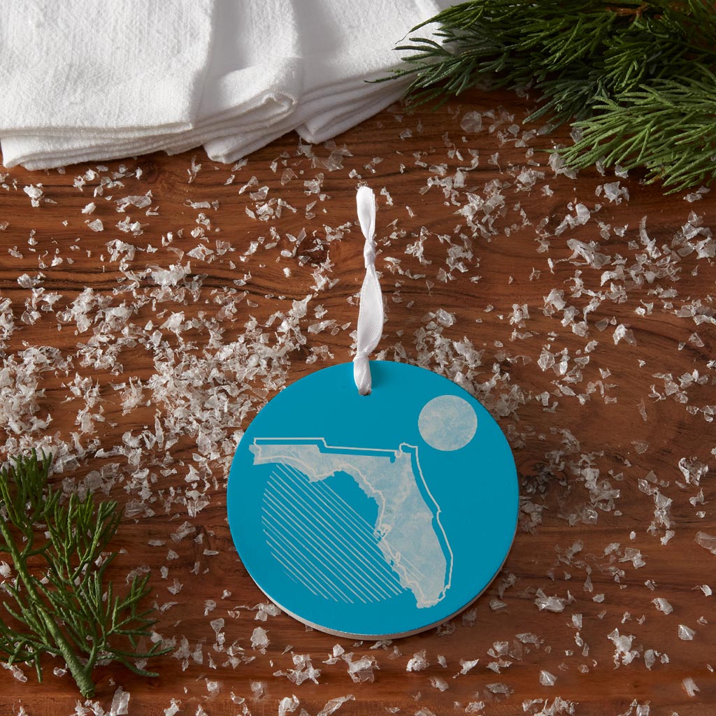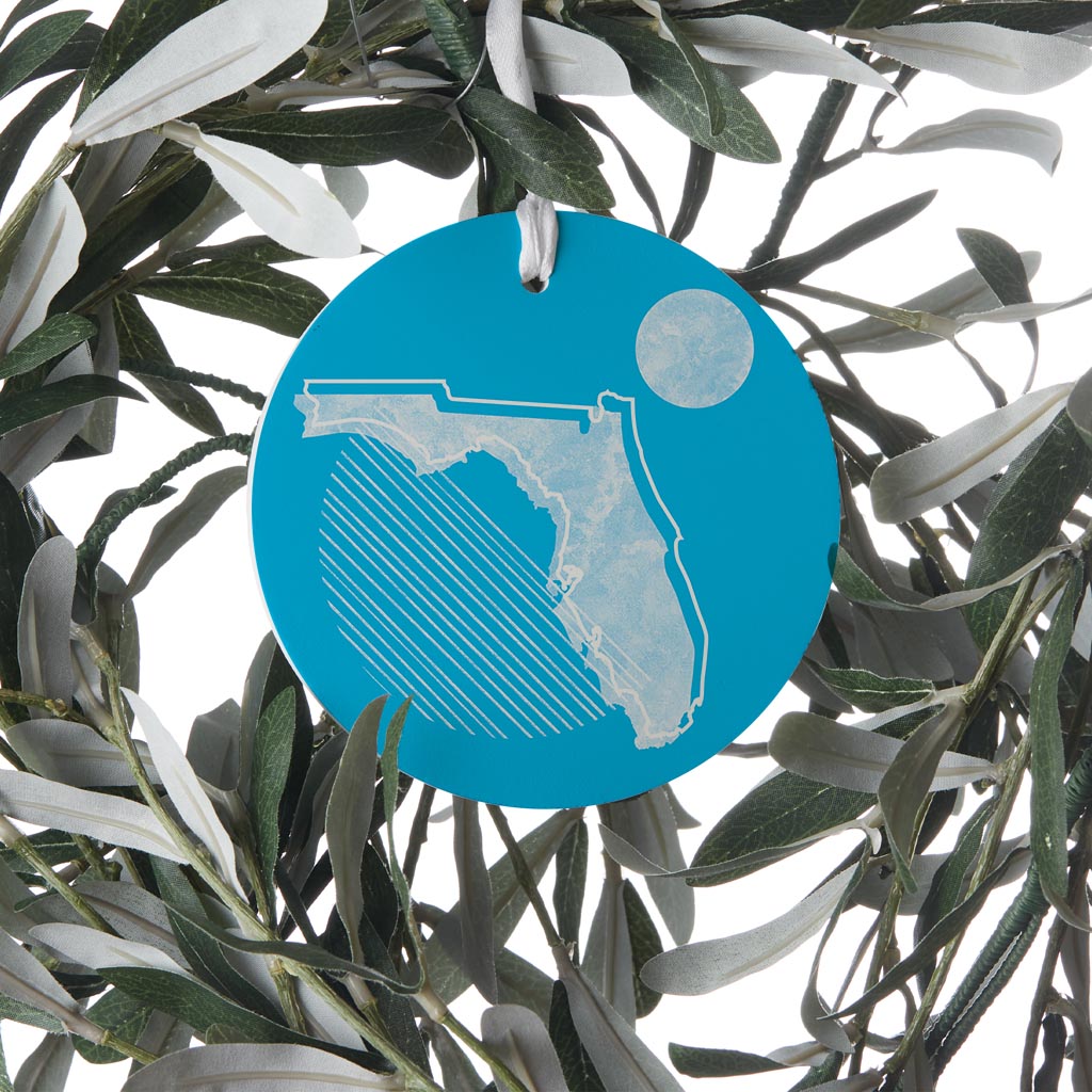 Bright Modern Geometric On Blue Florida| Wood Ornament | Eaches | Min 6
