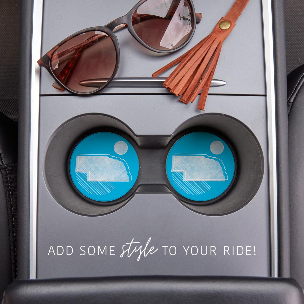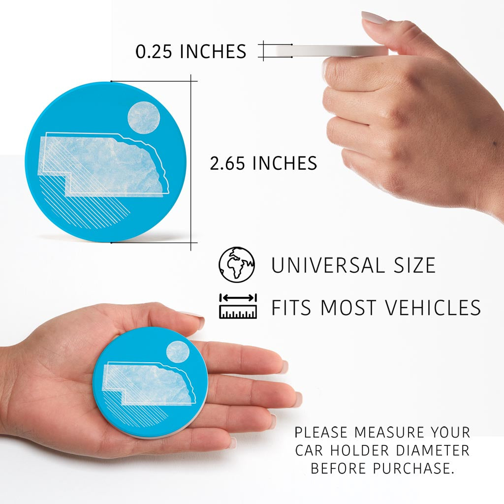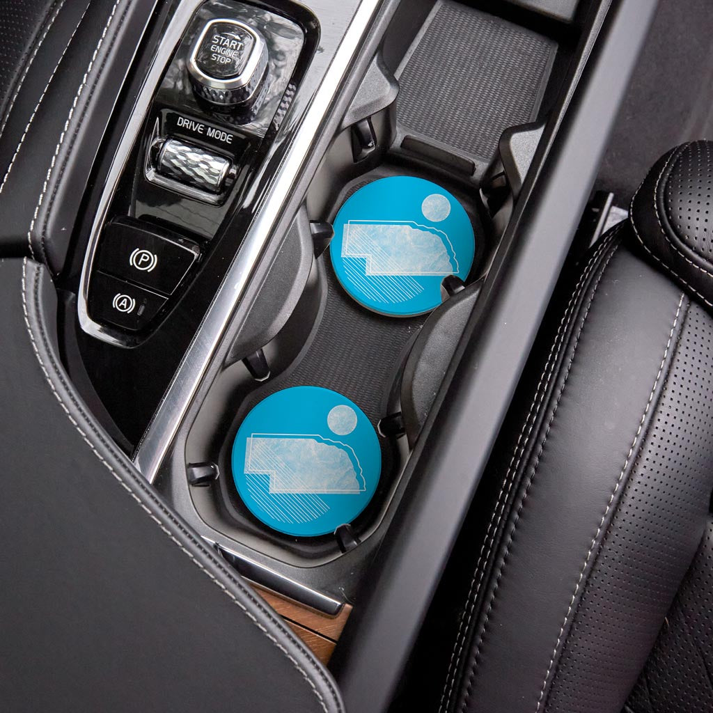 Bright Modern Geometric On Blue Nebraska| Absorbent Car Coasters | Set of 2 | Min 4