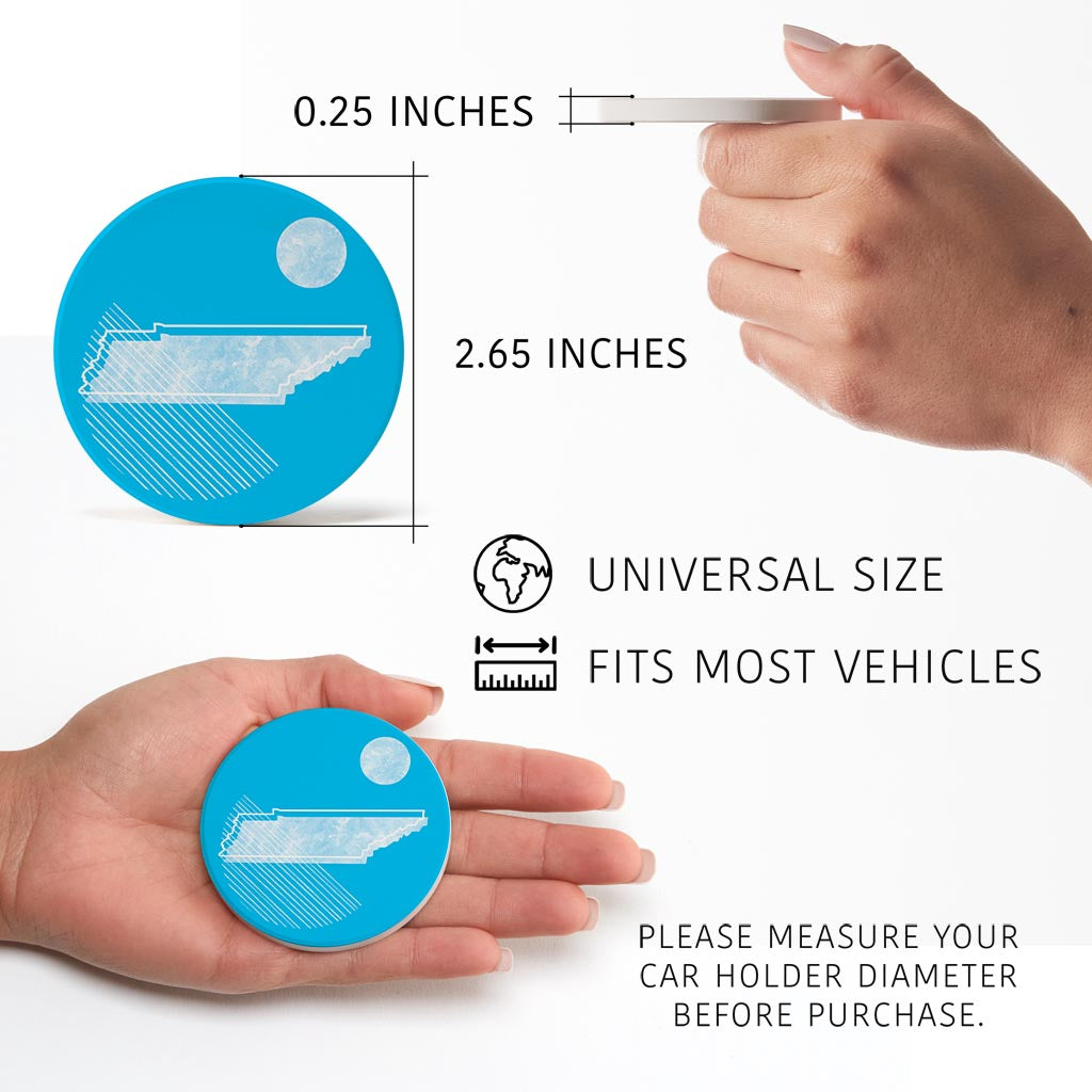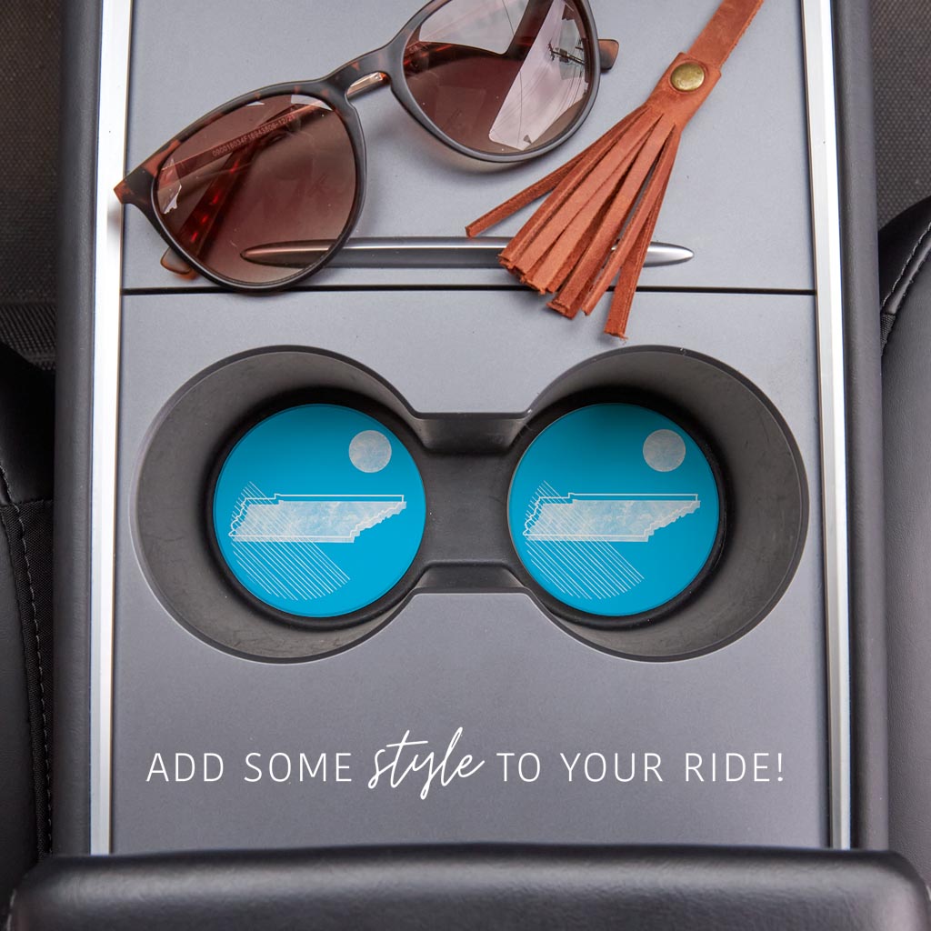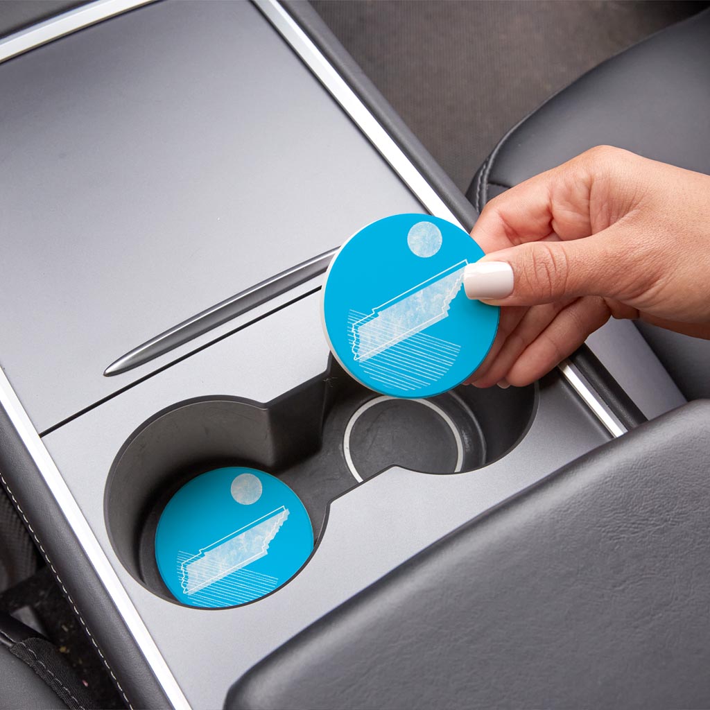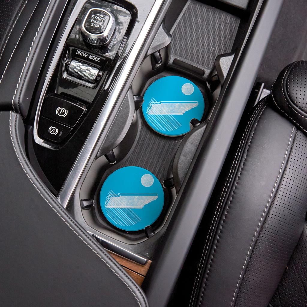 Bright Modern Geometric On Blue Tennessee | Absorbent Car Coasters | Set of 2 | Min 4