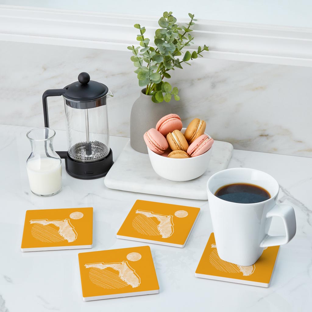 Bright Modern Geometric On Orange Florida | Absorbent Coasters | Set of 4 | Min 2