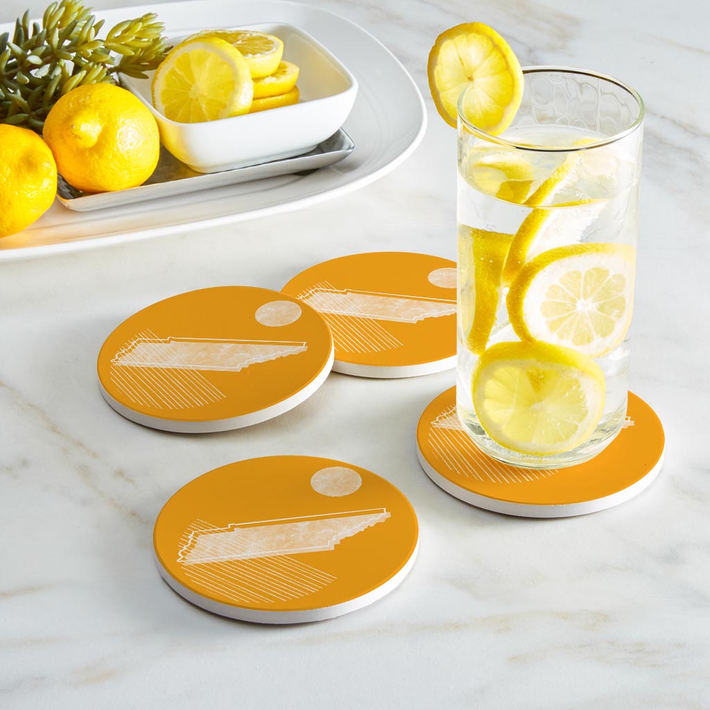 Bright Modern Geometric On Orange Tennessee | Absorbent Coasters | Set of 4 | Min 2