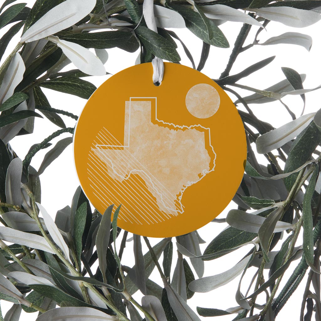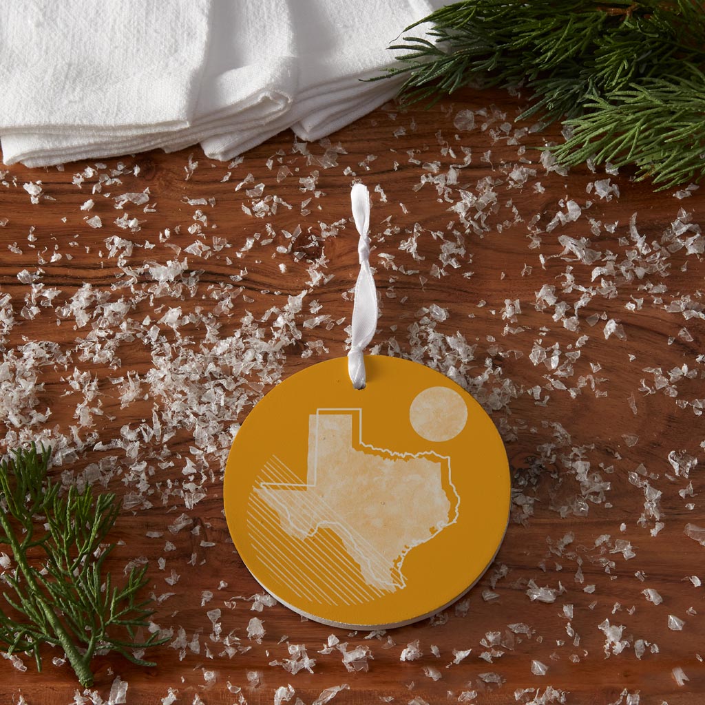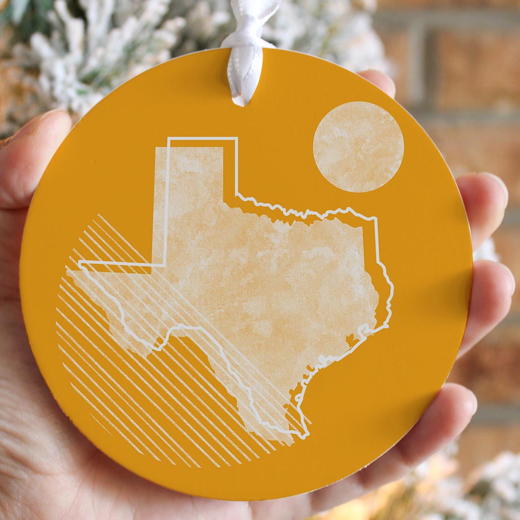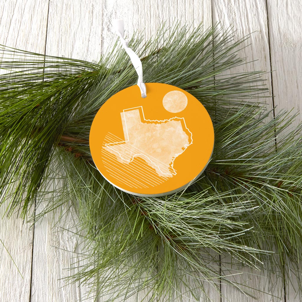 Bright Modern Geometric On Orange Texas| Wood Ornament | Eaches | Min 6