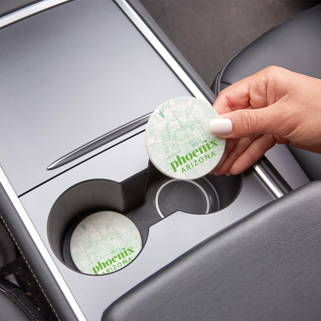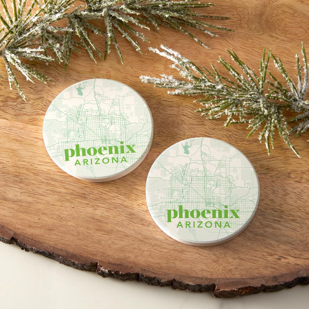Bright Modern Green Map Arizona Phoenix | Absorbent Car Coasters | Set of 2 | Min 4