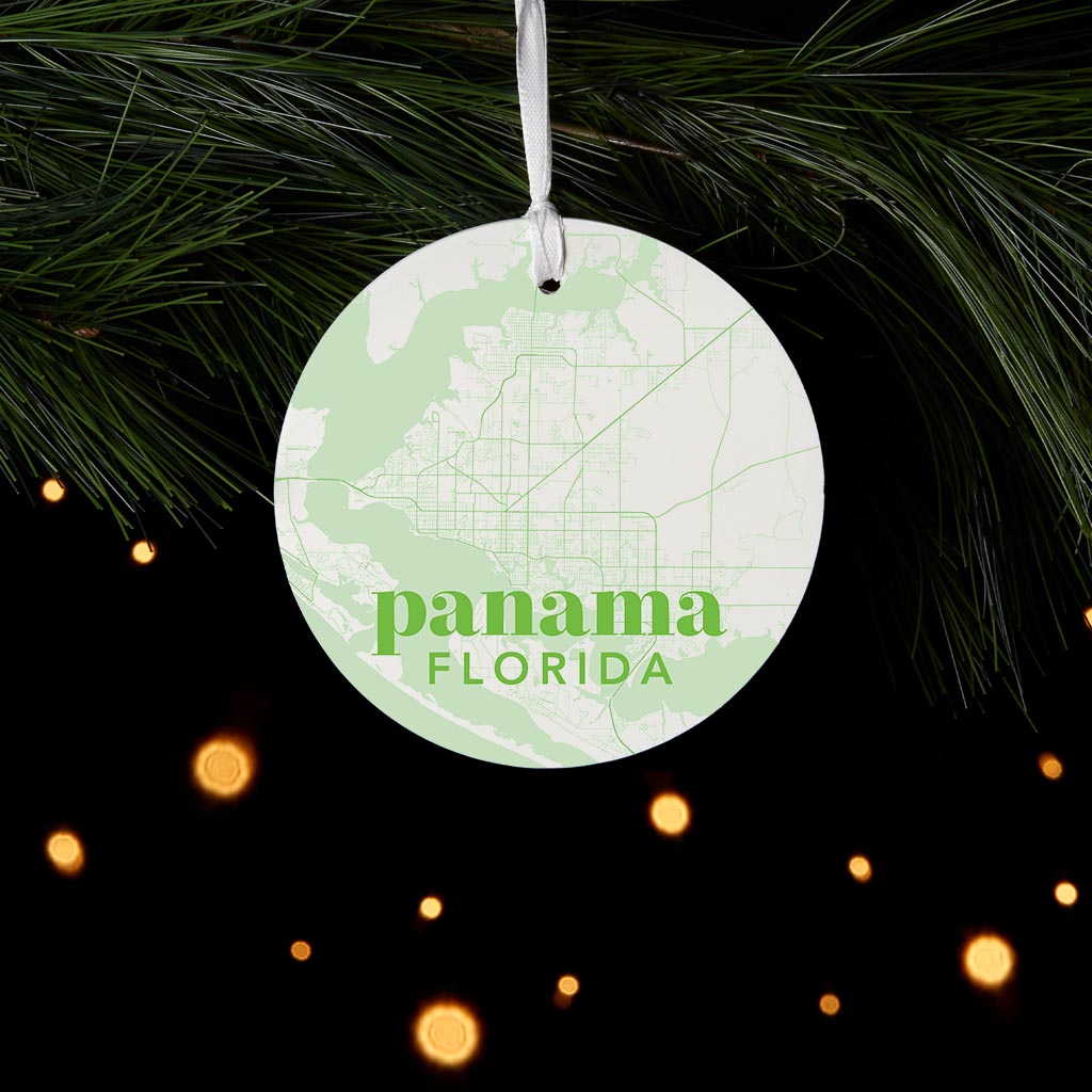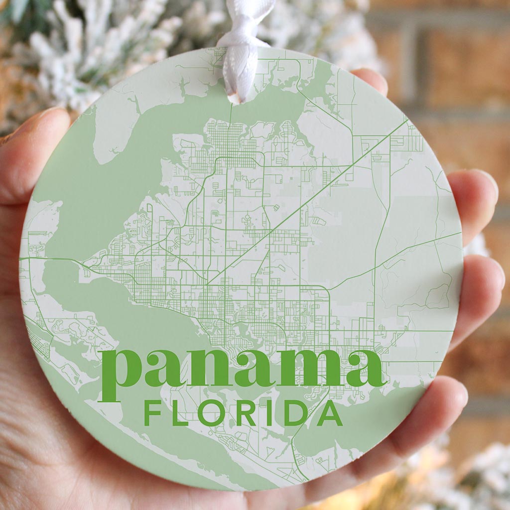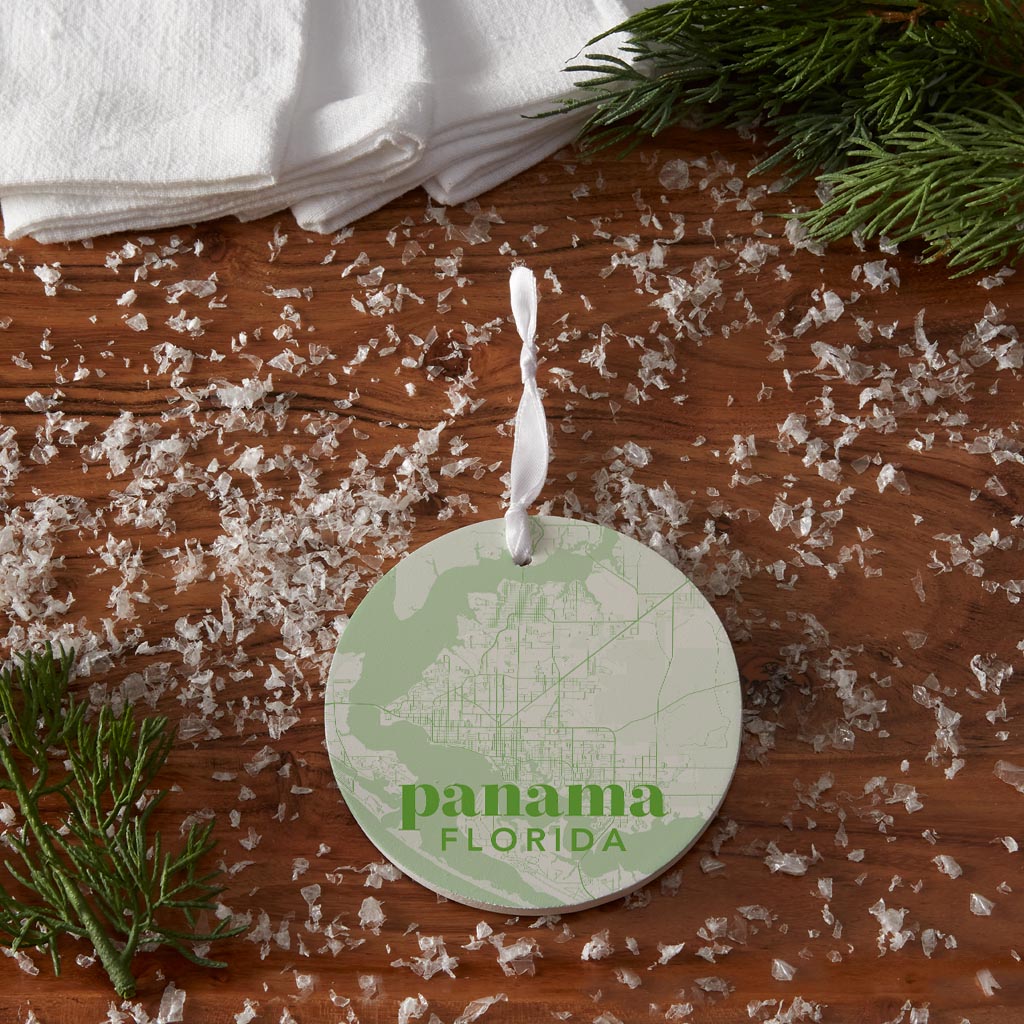 Bright Modern Green Map Florida Panama| Wood Ornament | Eaches | Min 6