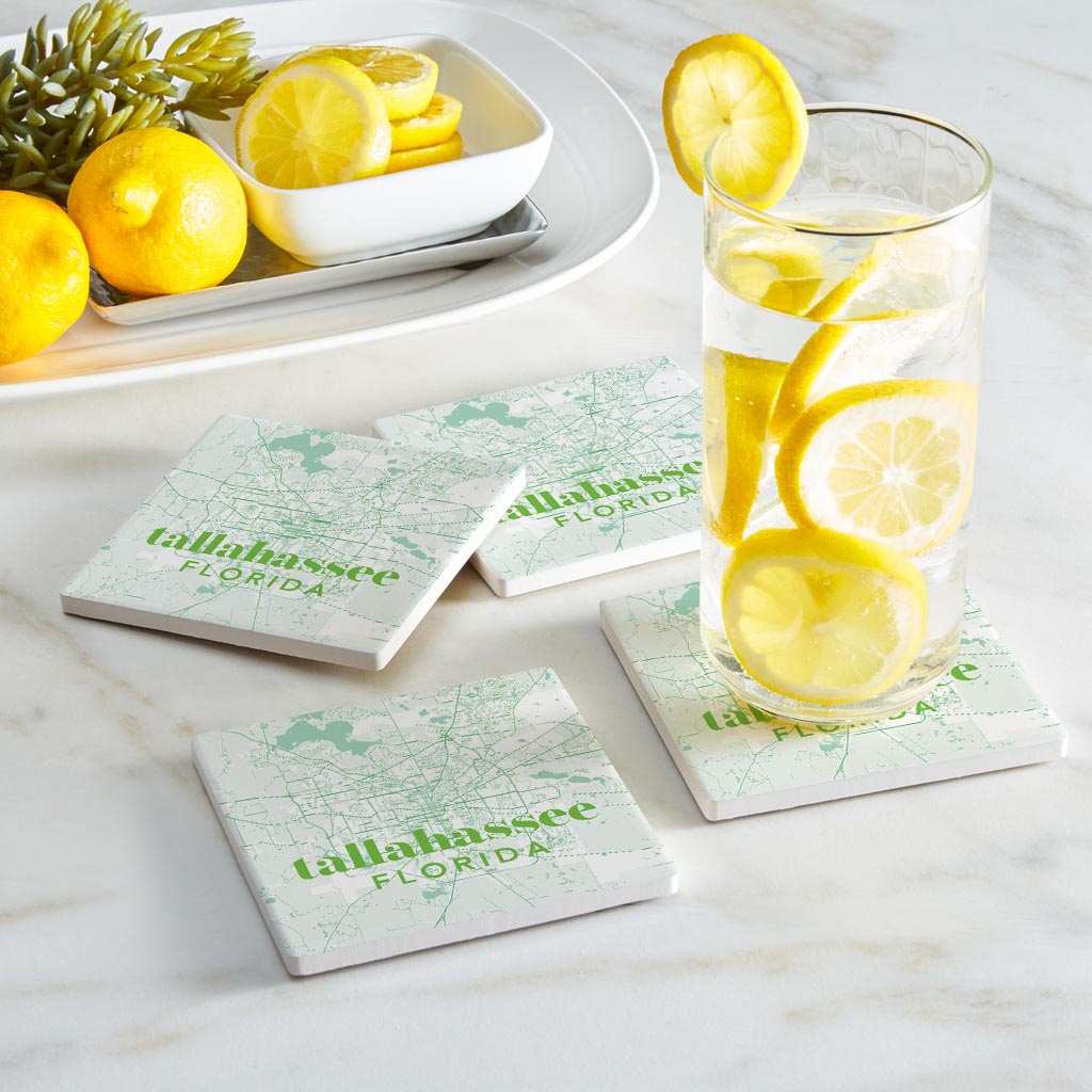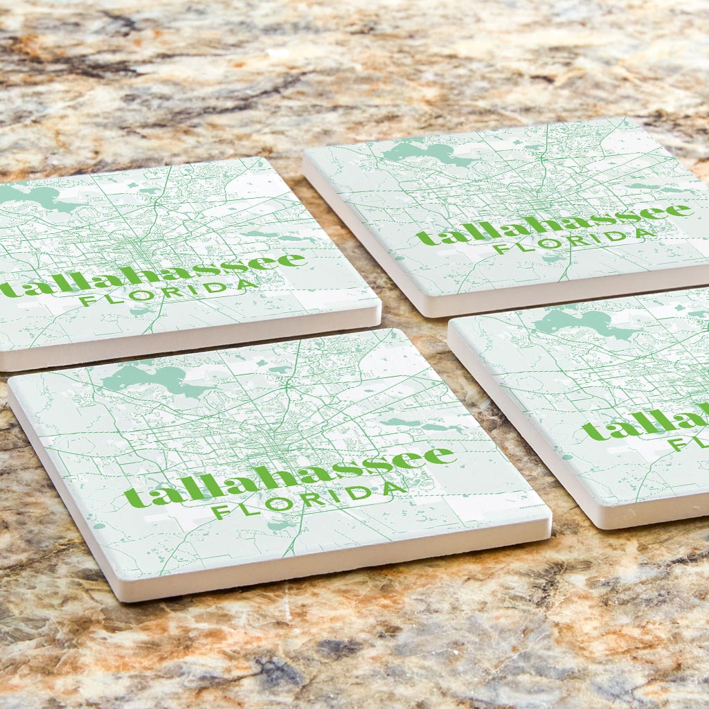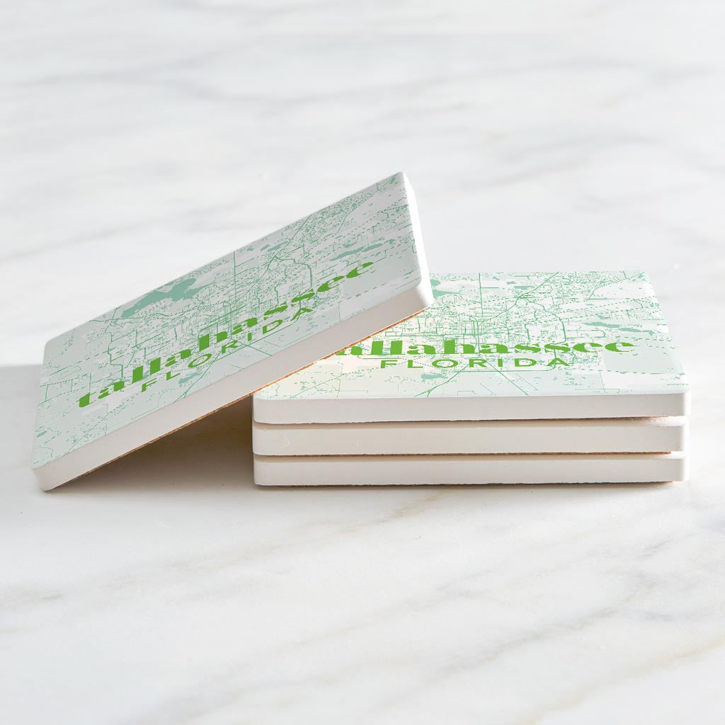 Bright Modern Green Map Florida Tallahassee | Absorbent Coasters | Set of 4 | Min 2