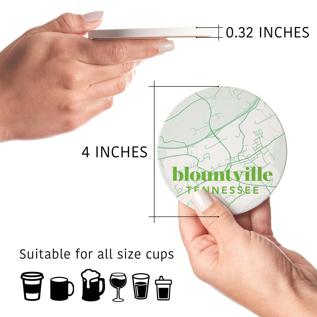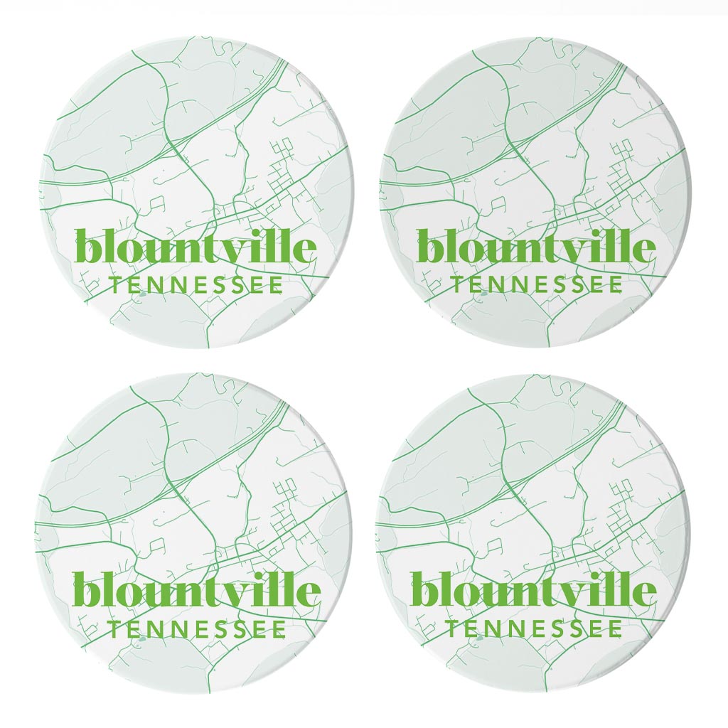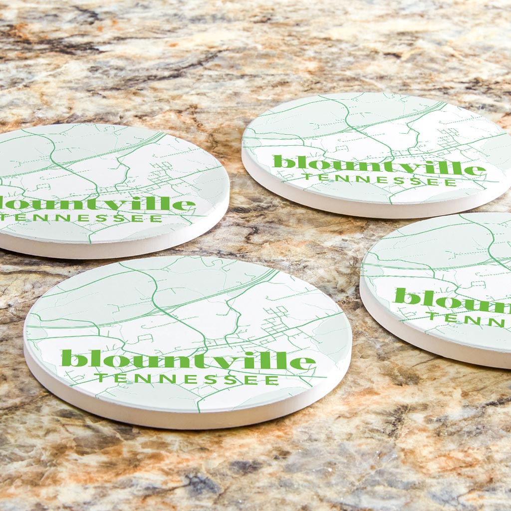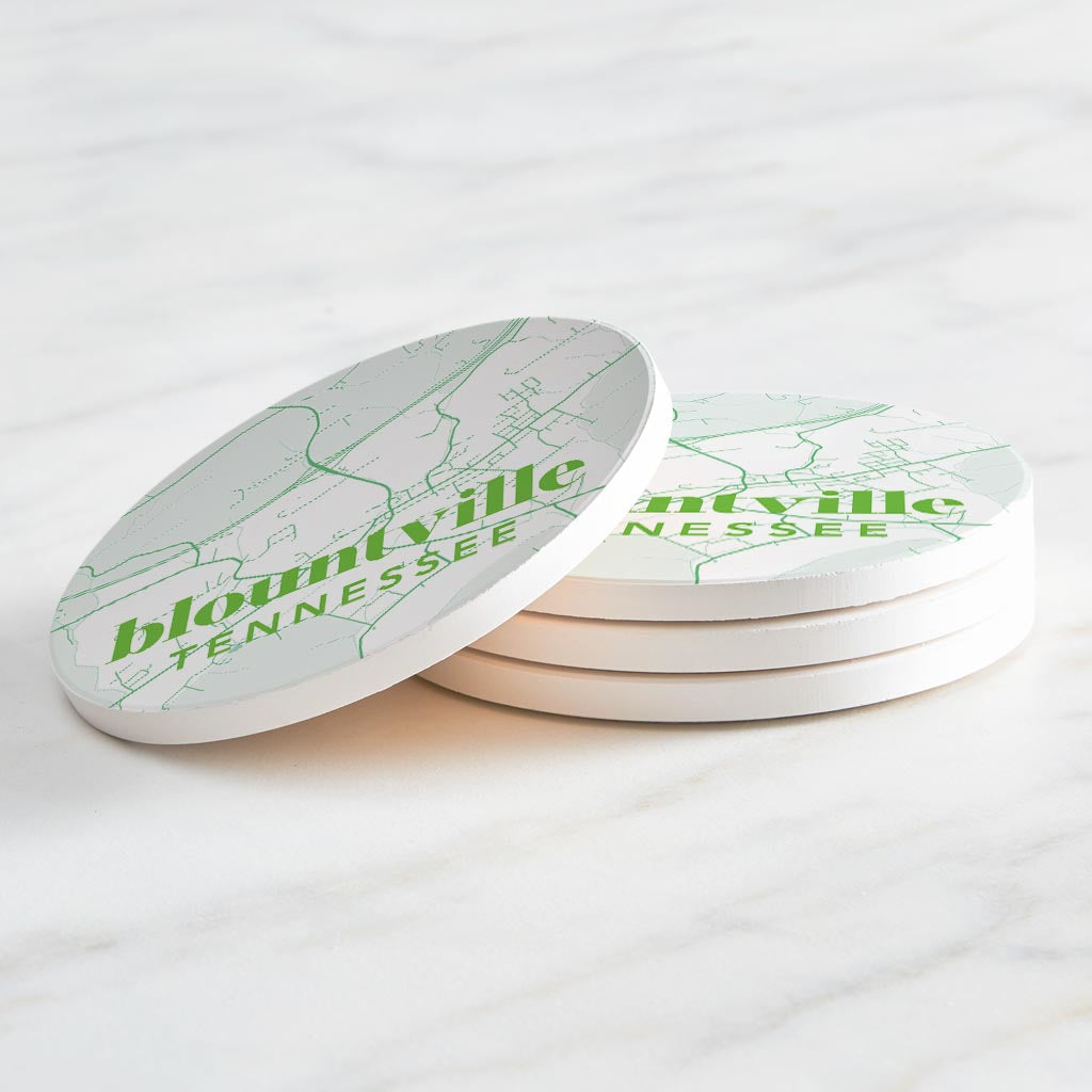 Bright Modern Green Map Tennessee Blountville | Absorbent Coasters | Set of 4 | Min 2