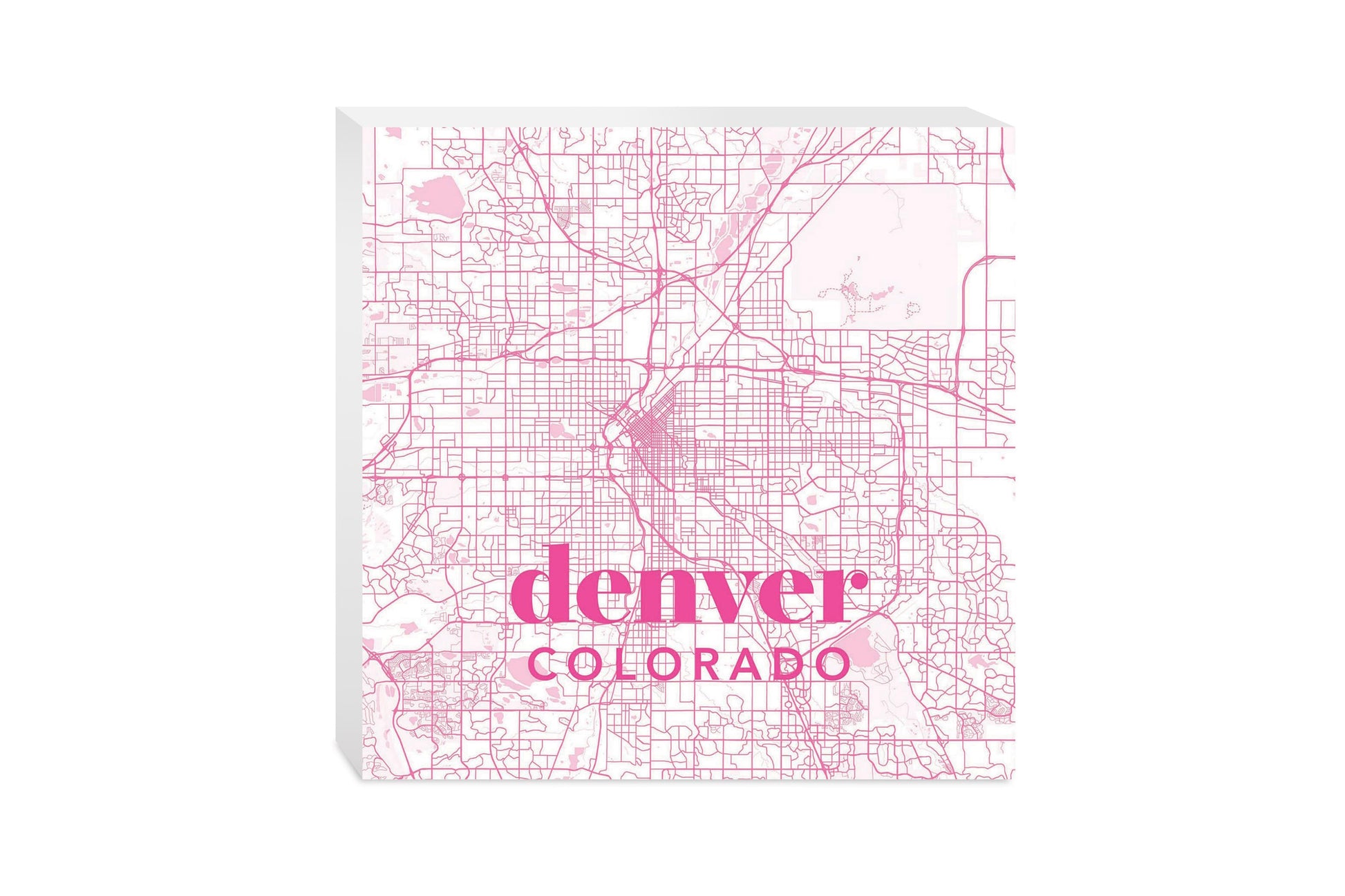 Bright Modern Pink Map Colorado Denver | Wood Block | Eaches | Min 2