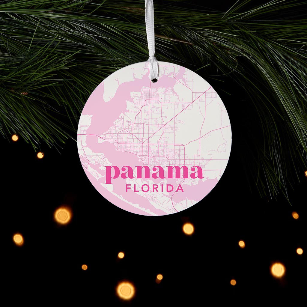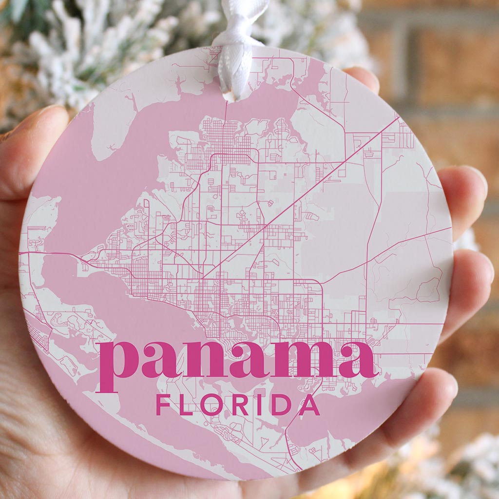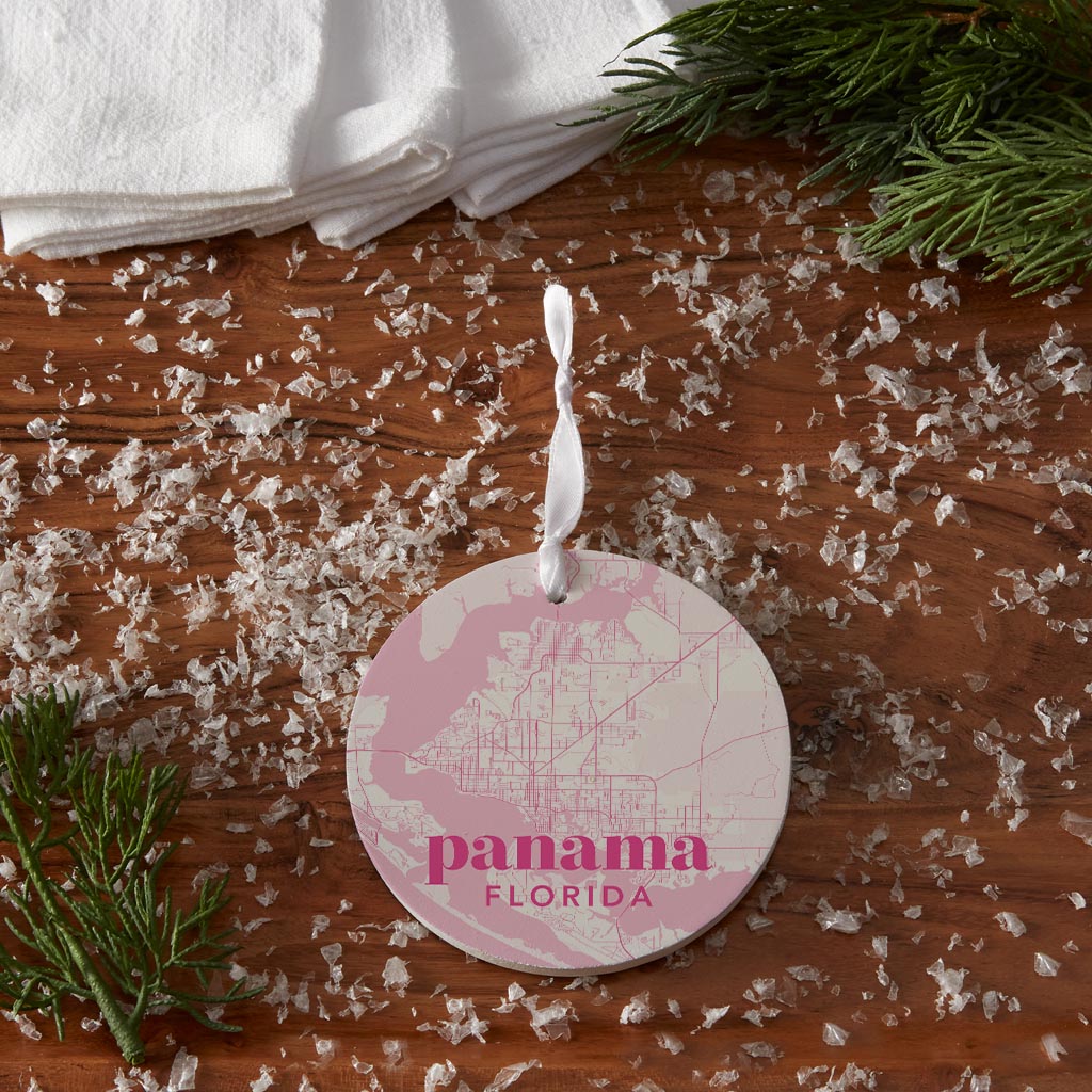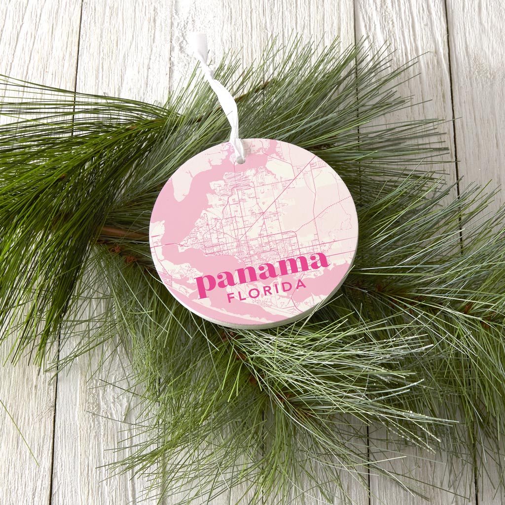 Bright Modern Pink Map Florida Panama| Wood Ornament | Eaches | Min 6