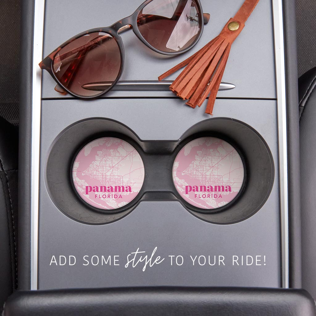Bright Modern Pink Map Florida Panama | Absorbent Car Coasters | Set of 2 | Min 4