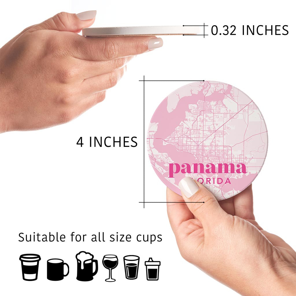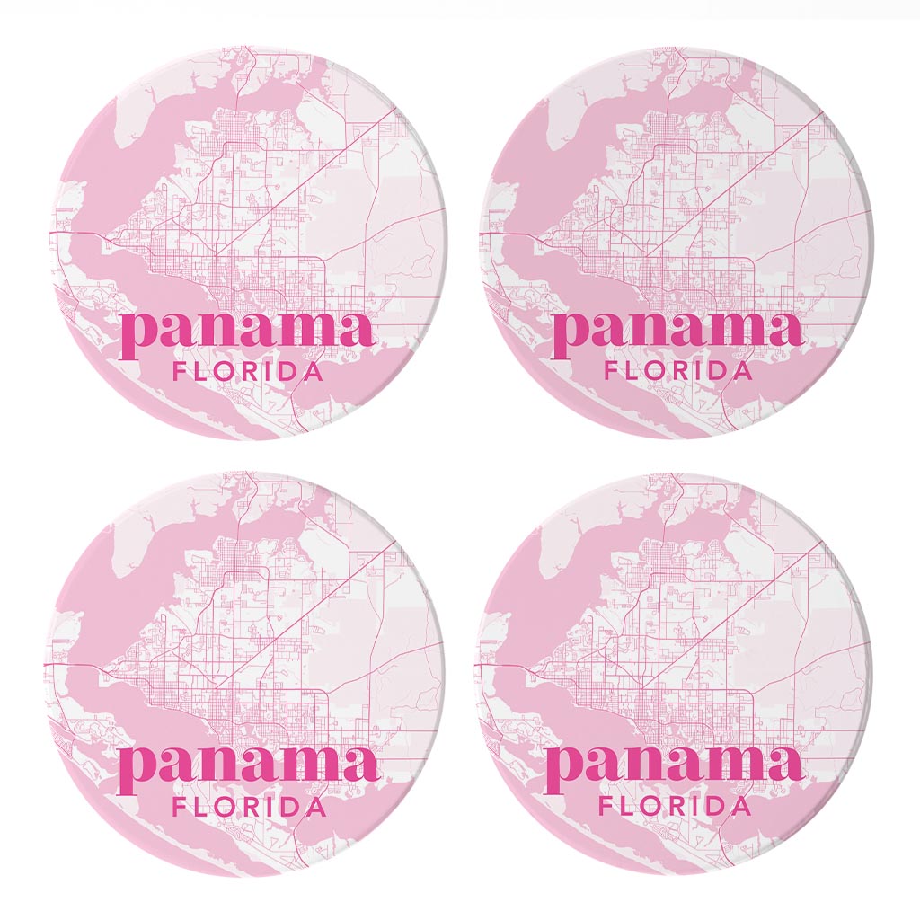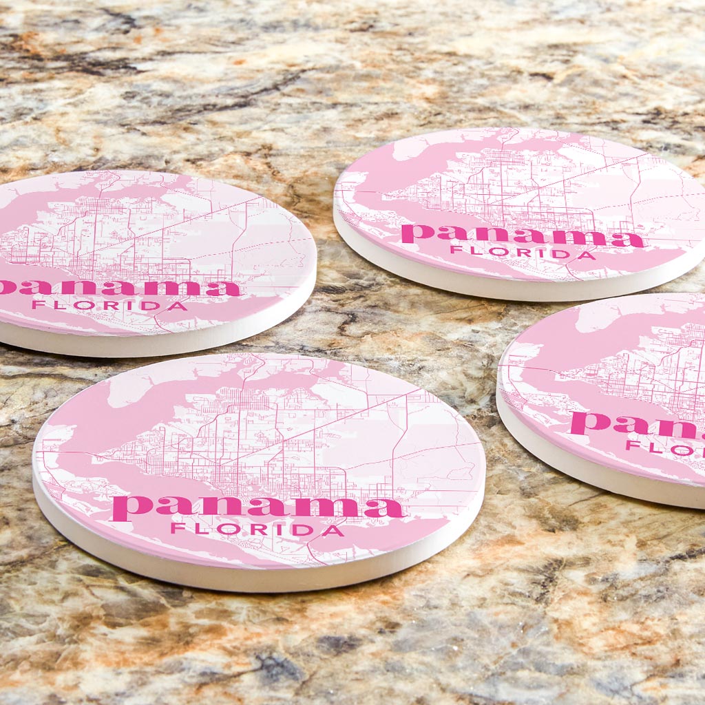 Bright Modern Pink Map Florida Panama | Absorbent Coasters | Set of 4 | Min 2