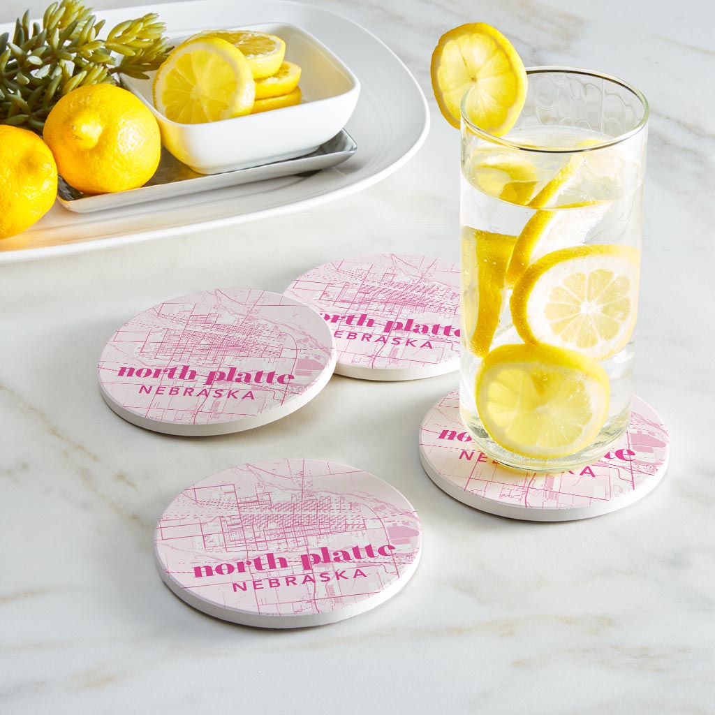 Bright Modern Pink Map Nebraska North Platte | Absorbent Coasters | Set of 4 | Min 2
