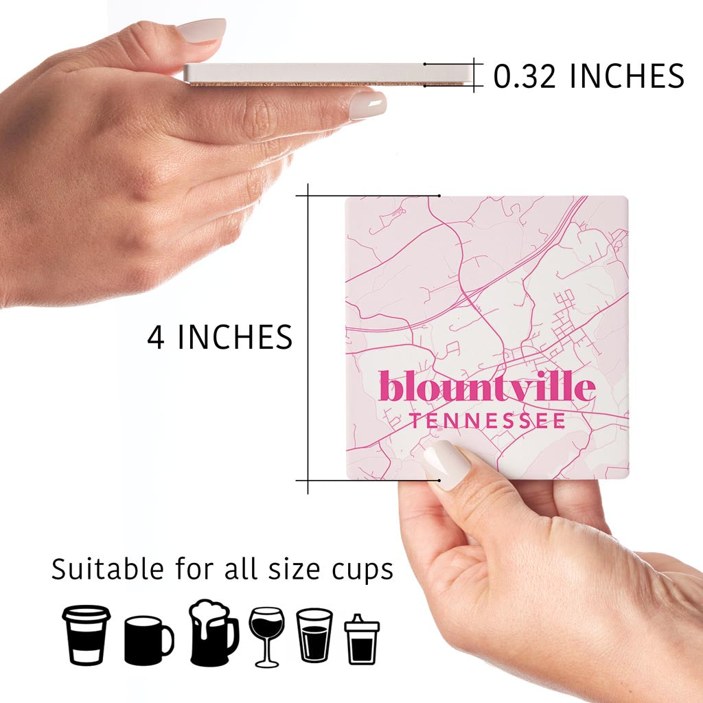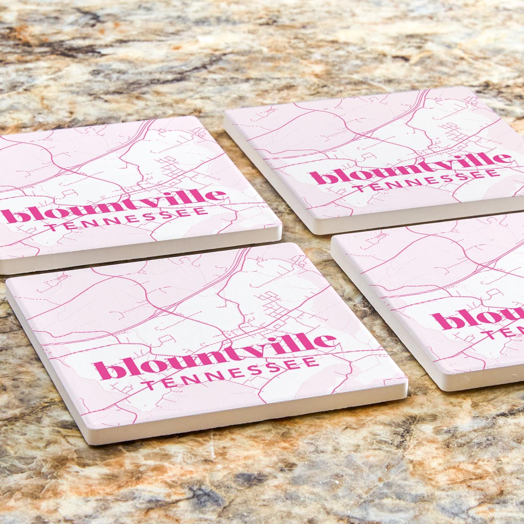 Bright Modern Pink Map Tennessee Blountville | Absorbent Coasters | Set of 4 | Min 2
