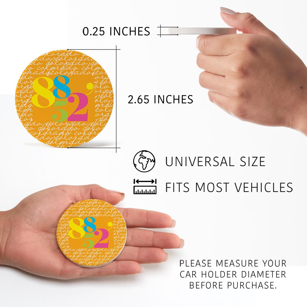 Bright Modern Script Orange Colorado Creede | Absorbent Car Coasters | Set of 2 | Min 4