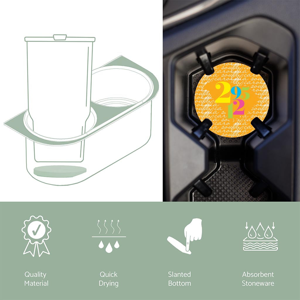 Car coasters are that little accessory that you didn’t know you needed but now consider an essential. Your cupholders are protected and kept clean by absorbing drips from your morning coffee to sticky juice boxes. The strategic divot edge allows you to easily pop it out and wipe clean. No more grime stuck in the cupholder abyss. While car coasters are wonderfully utilitarian, they also inject a little personality and design into the space you spend so much time in. Order an assortment to mix and match to the season or newest trends.