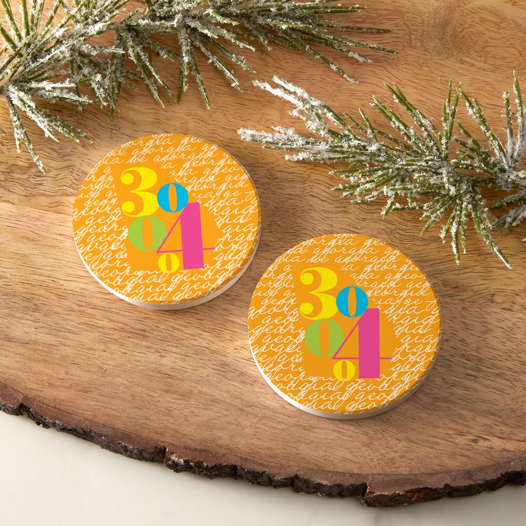 Bright Modern State Script Orange Georgia Atlanta | Absorbent Car Coasters | Set of 2 | Min 4