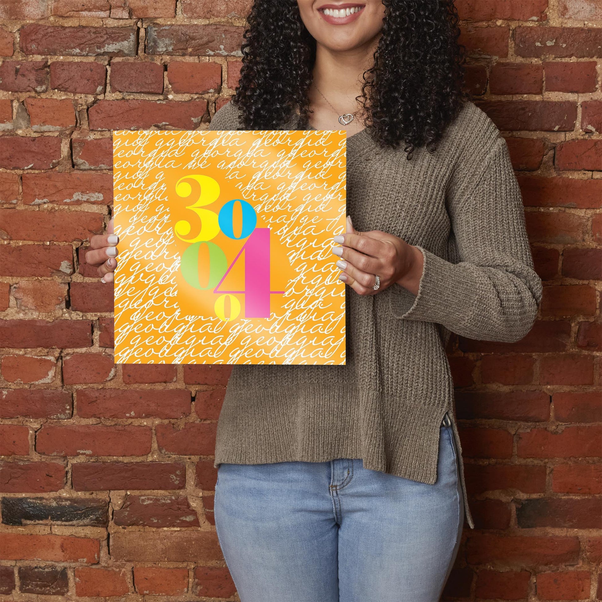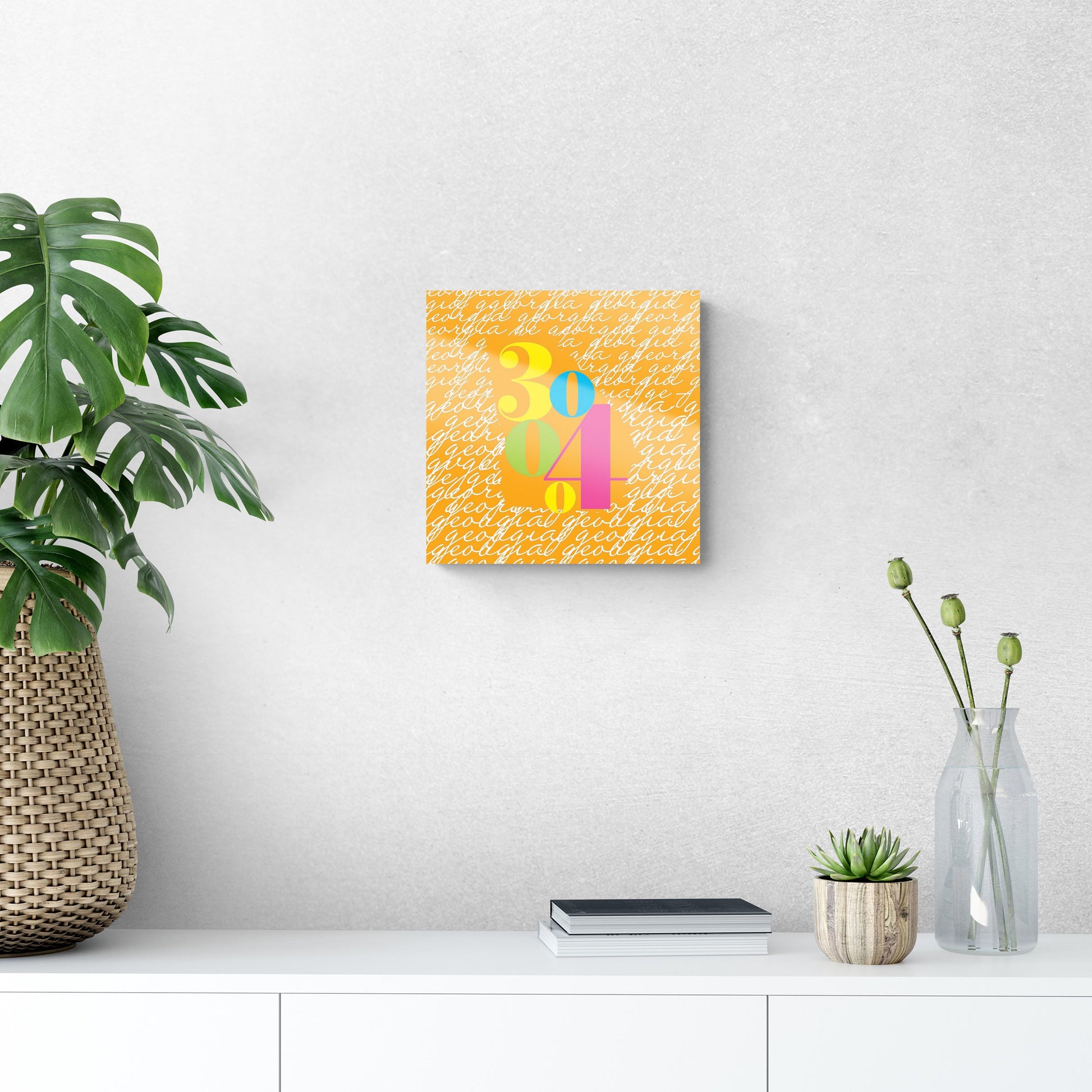 Bright Modern State Script Orange Georgia Atlanta | Hi-Def Glass Art | Eaches | Min 1