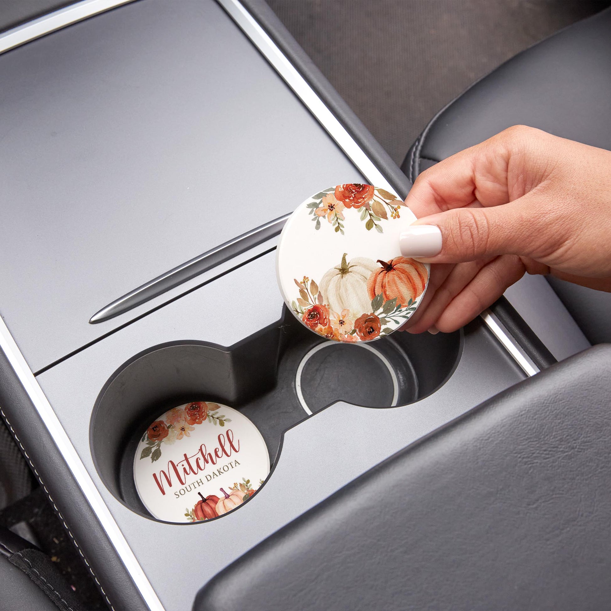 If you don’t know about car coasters yet…they’re a big deal. Like hair in the 80’s. You might ask yourself, “where have these been all my life?” Car coasters fit snuggly into your vehicle’s cup holders. Strategic divot on one side so they can be easily popped out. Pretty & practical – a pop of design and they keep your cup holders clean. 2.65” diameter. Absorbent ceramic coaster. Designed, printed and packaged in the USA
