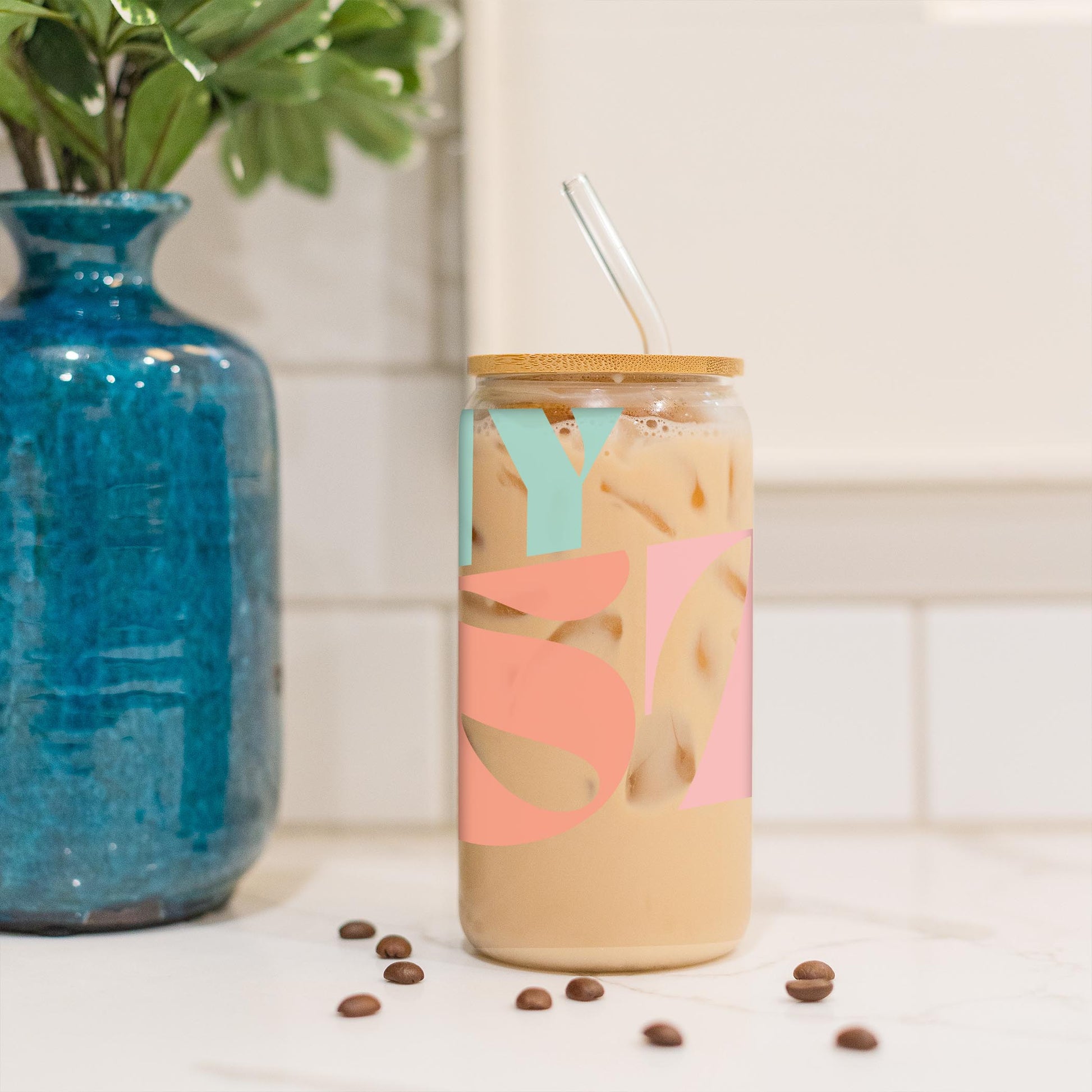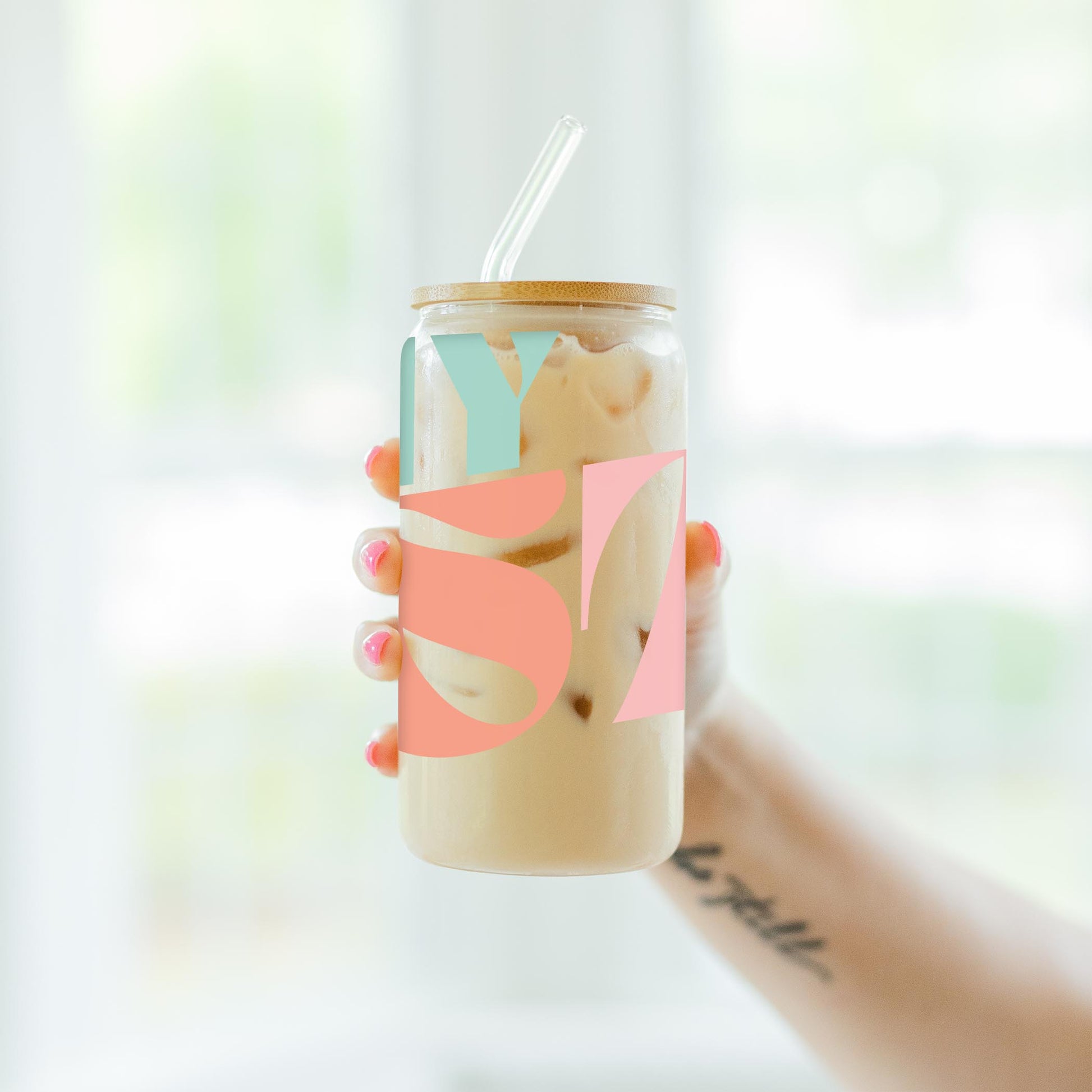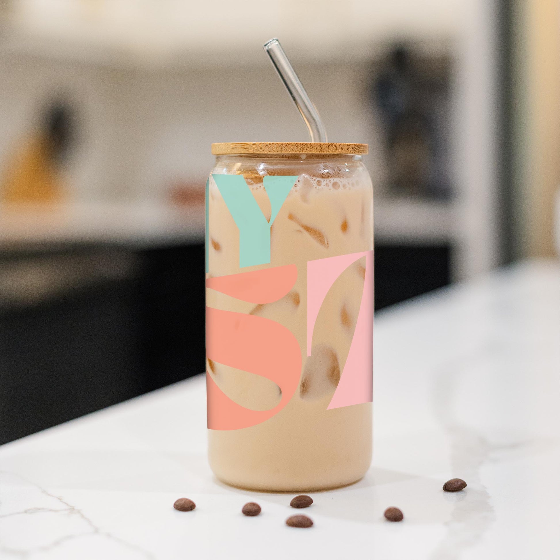 Elevate your favorite chilled beverage with our 16oz Glass Cup. These Glass Cups come with a glass straw and bamboo lid. It's perfectly sized to hold your favorite cold brew, smoothie, cocktail, or refresher.