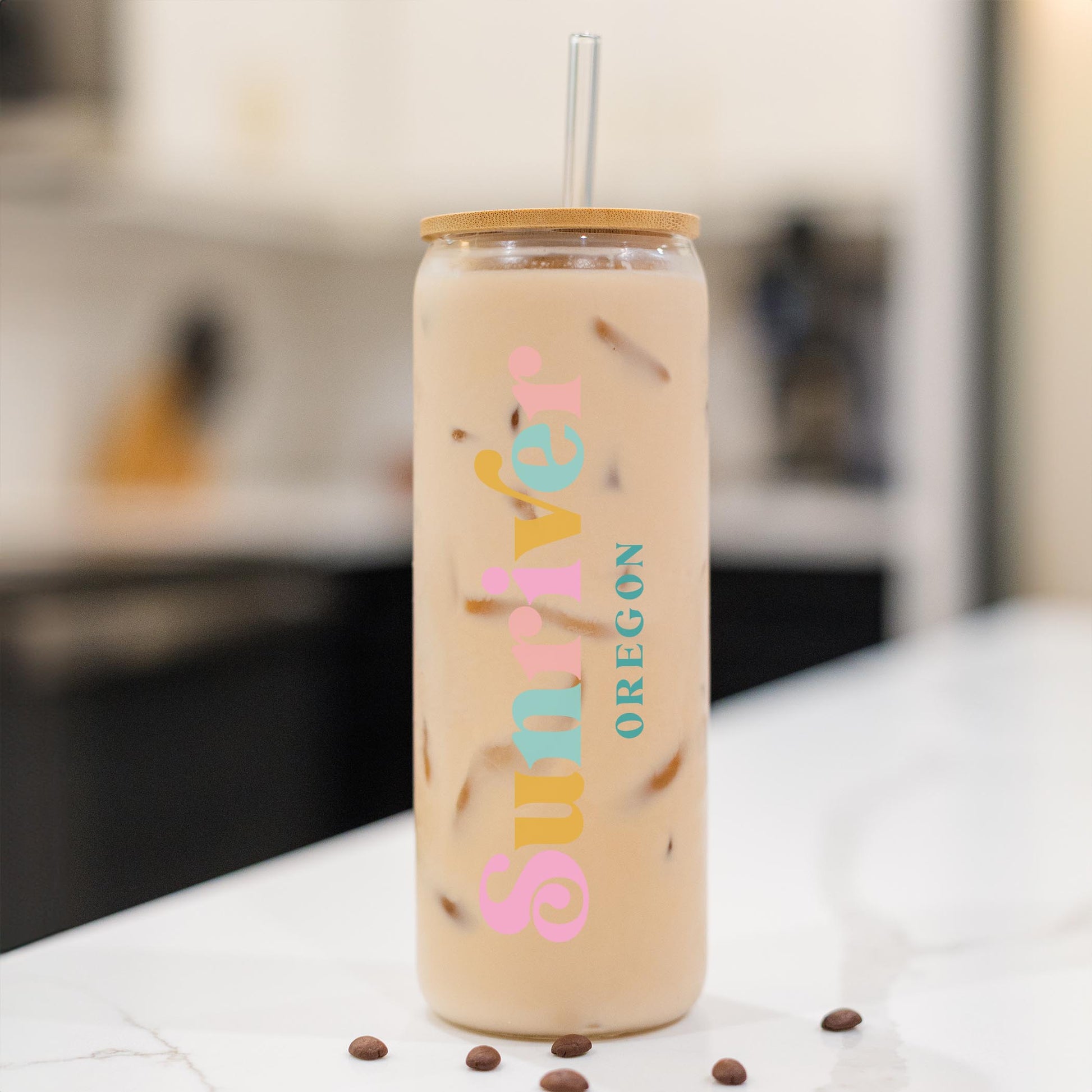 Elevate your favorite chilled beverage with our 24oz Glass Cup. These Glass Cups come with a glass straw and bamboo lid. It's perfectly sized to hold your favorite cold brew, smoothie, cocktail, or refresher.