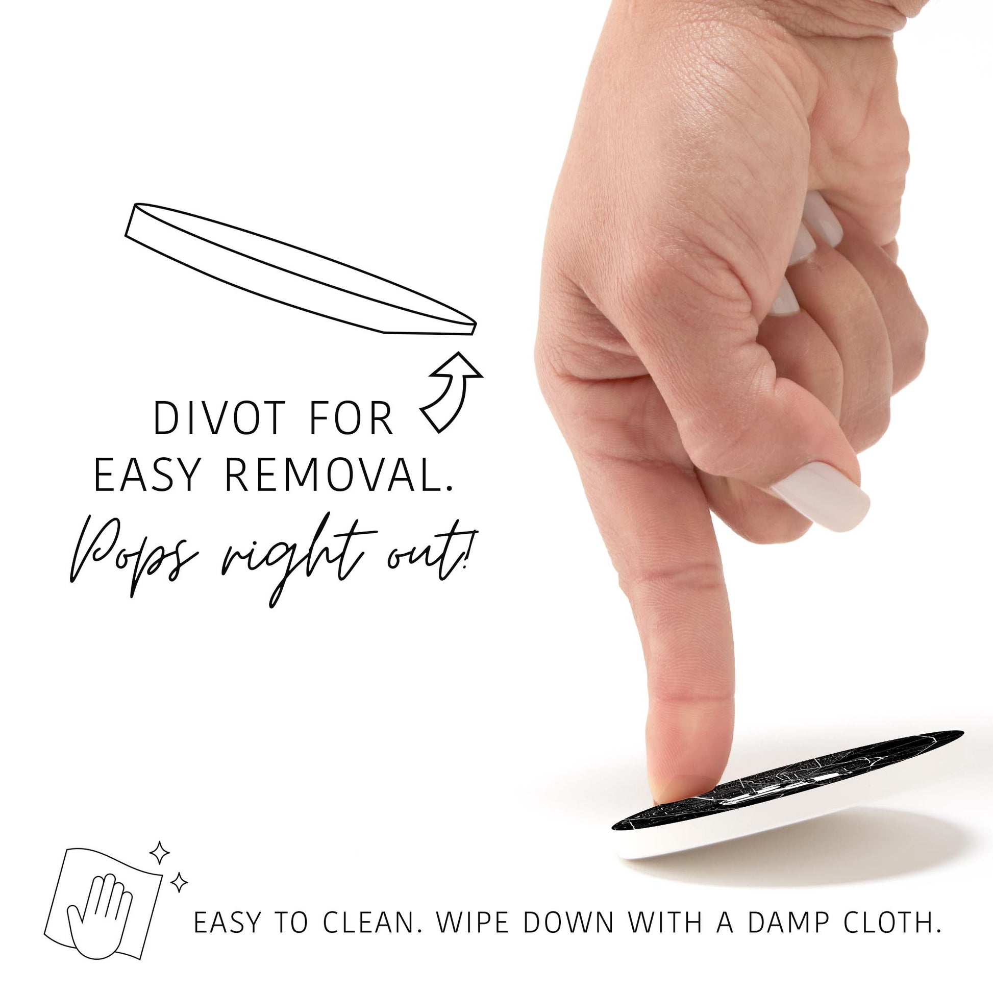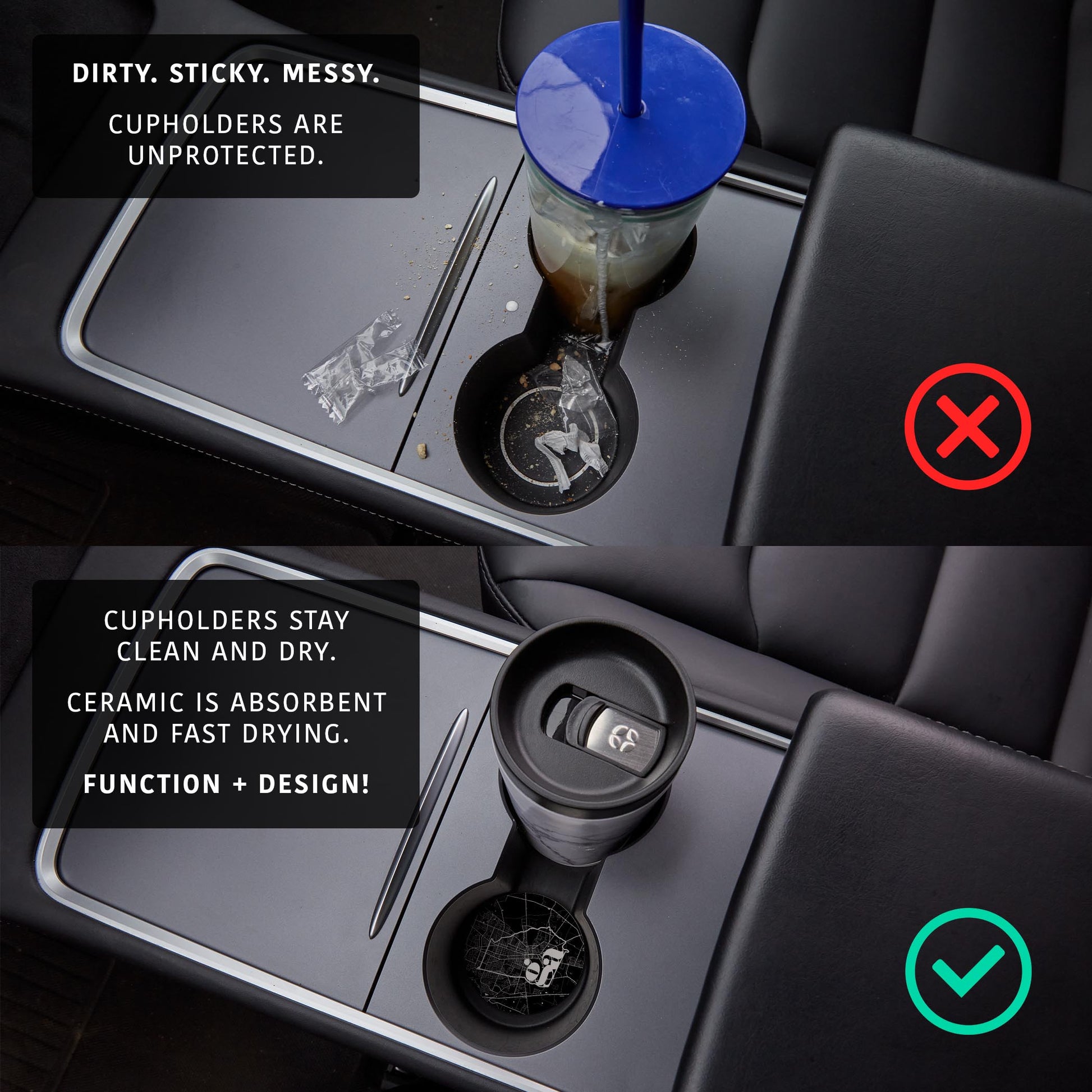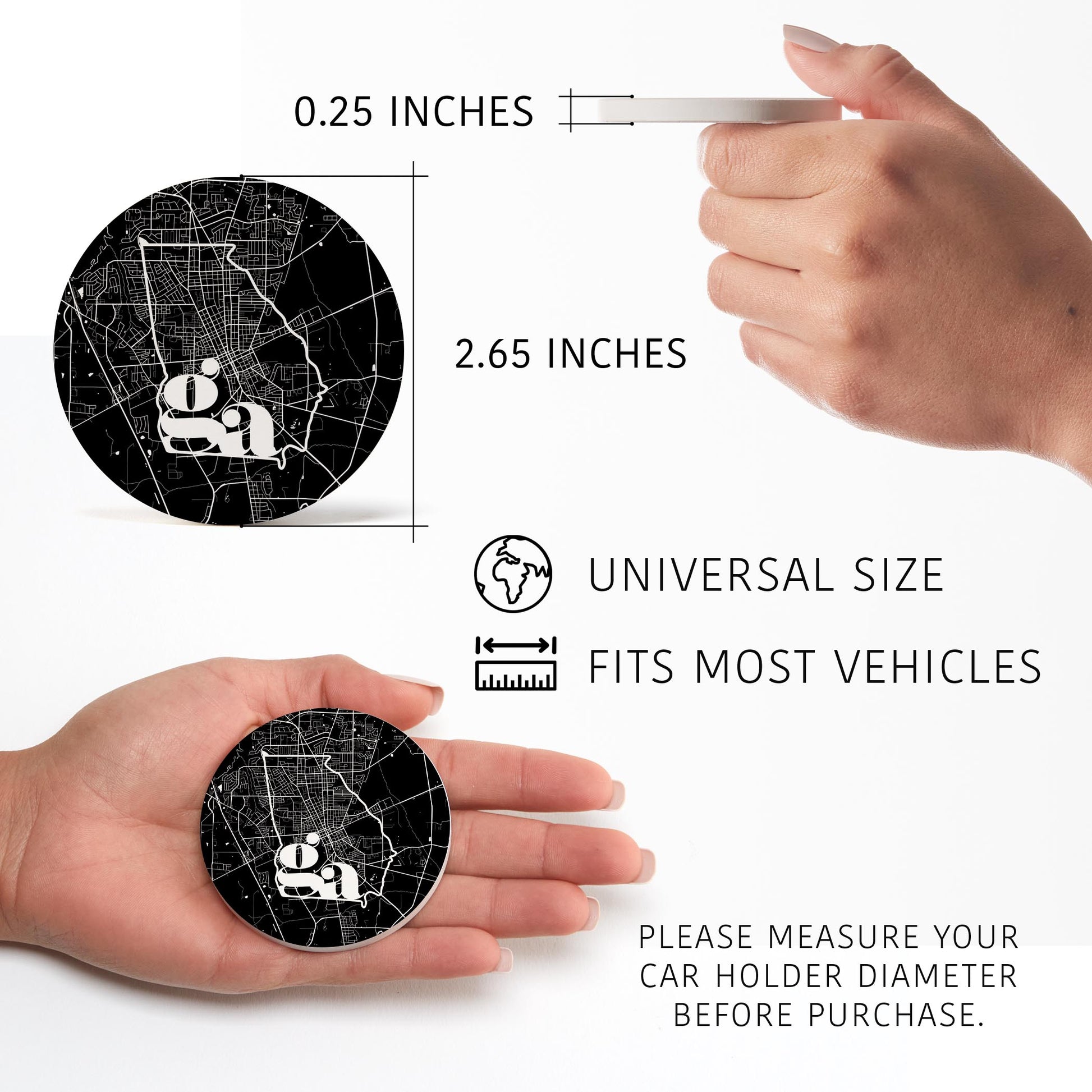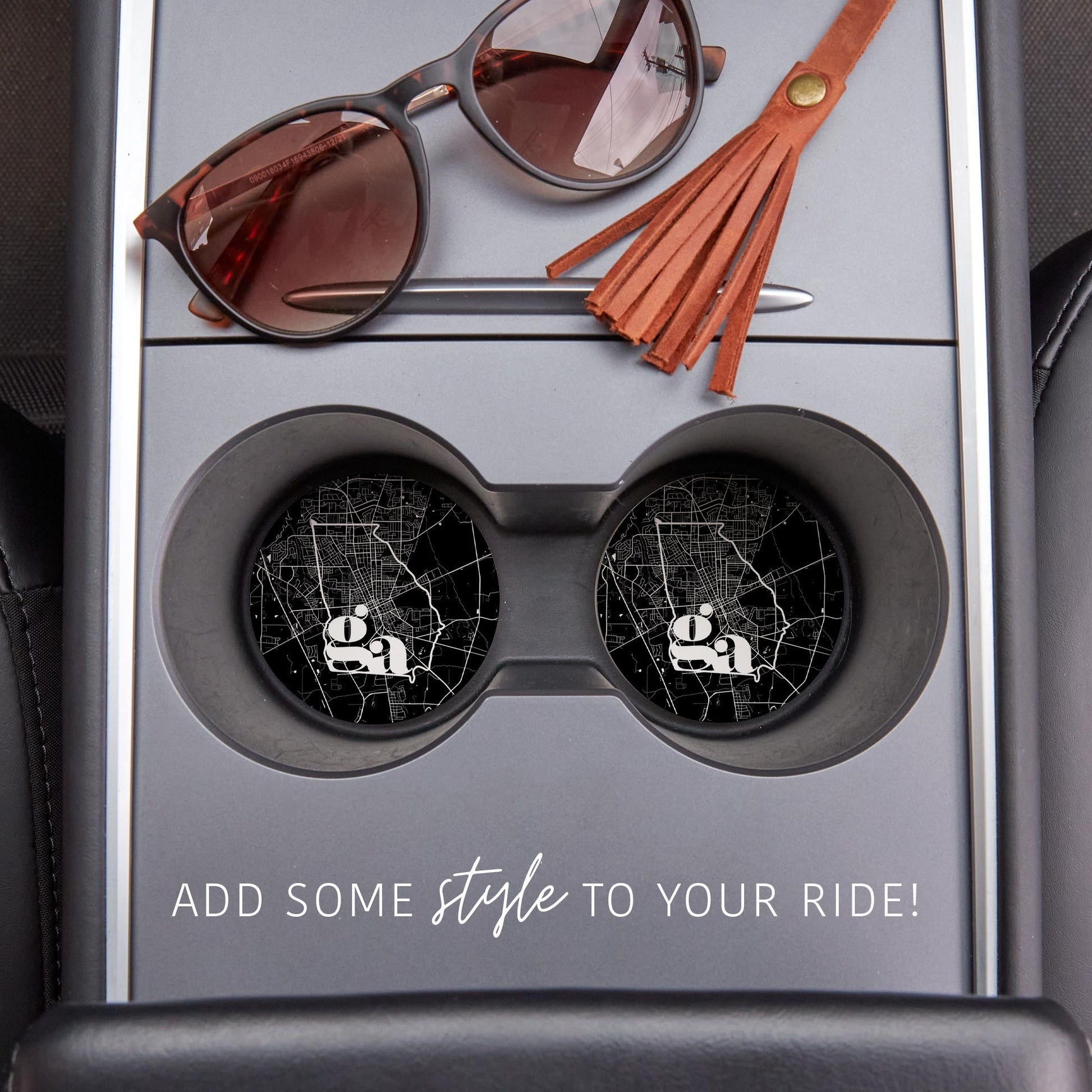 If you don’t know about car coasters yet…they’re a big deal. Like hair in the 80’s. You might ask yourself, “where have these been all my life?” Car coasters fit snuggly into your vehicle’s cup holders. Strategic divot on one side so they can be easily popped out. Pretty & practical – a pop of design and they keep your cup holders clean. 2.65” diameter. Absorbent ceramic coaster. Designed, printed and packaged in the USA