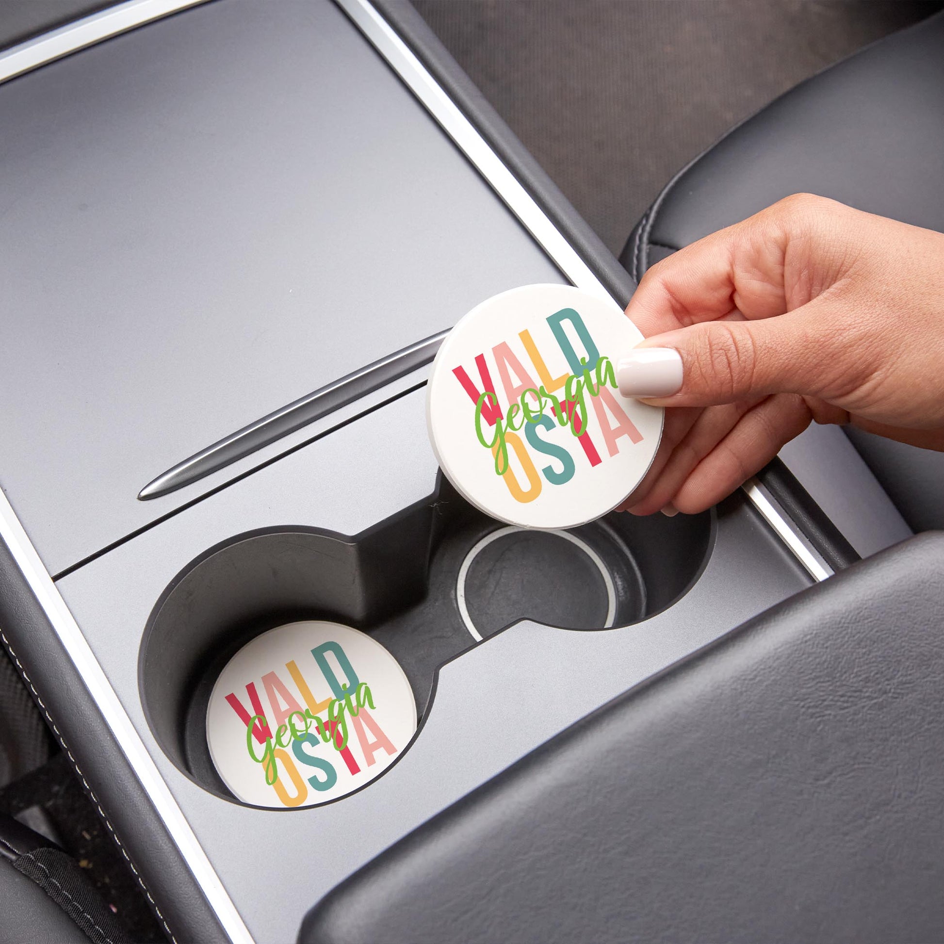 If you don’t know about car coasters yet…they’re a big deal. Like hair in the 80’s. You might ask yourself, “where have these been all my life?” Car coasters fit snuggly into your vehicle’s cup holders. Strategic divot on one side so they can be easily popped out. Pretty & practical – a pop of design and they keep your cup holders clean. 2.65” diameter. Absorbent ceramic coaster. Designed, printed and packaged in the USA