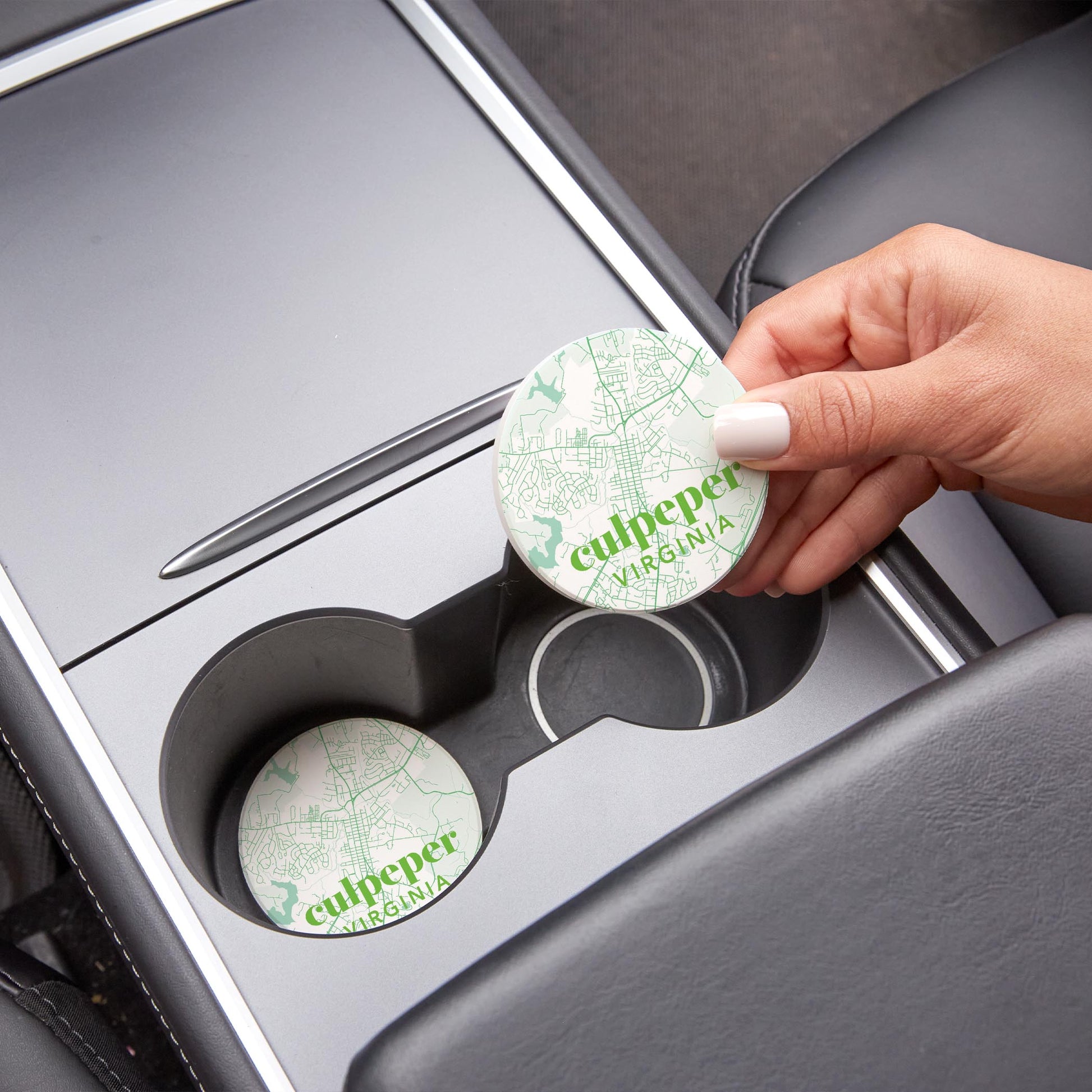 Car Coaster 2-Set-Bright Modern Green Map Culpepper VA