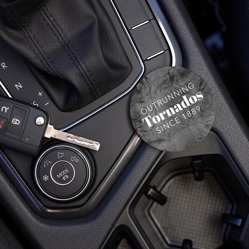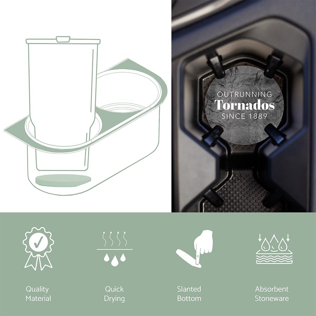 If you don’t know about car coasters yet…they’re a big deal. Like hair in the 80’s. You might ask yourself, “where have these been all my life?” Car coasters fit snuggly into your vehicle’s cup holders. Strategic divot on one side so they can be easily popped out. Pretty & practical – a pop of design and they keep your cup holders clean. 2.65” diameter. Absorbent ceramic coaster. Designed, printed and packaged in the USA