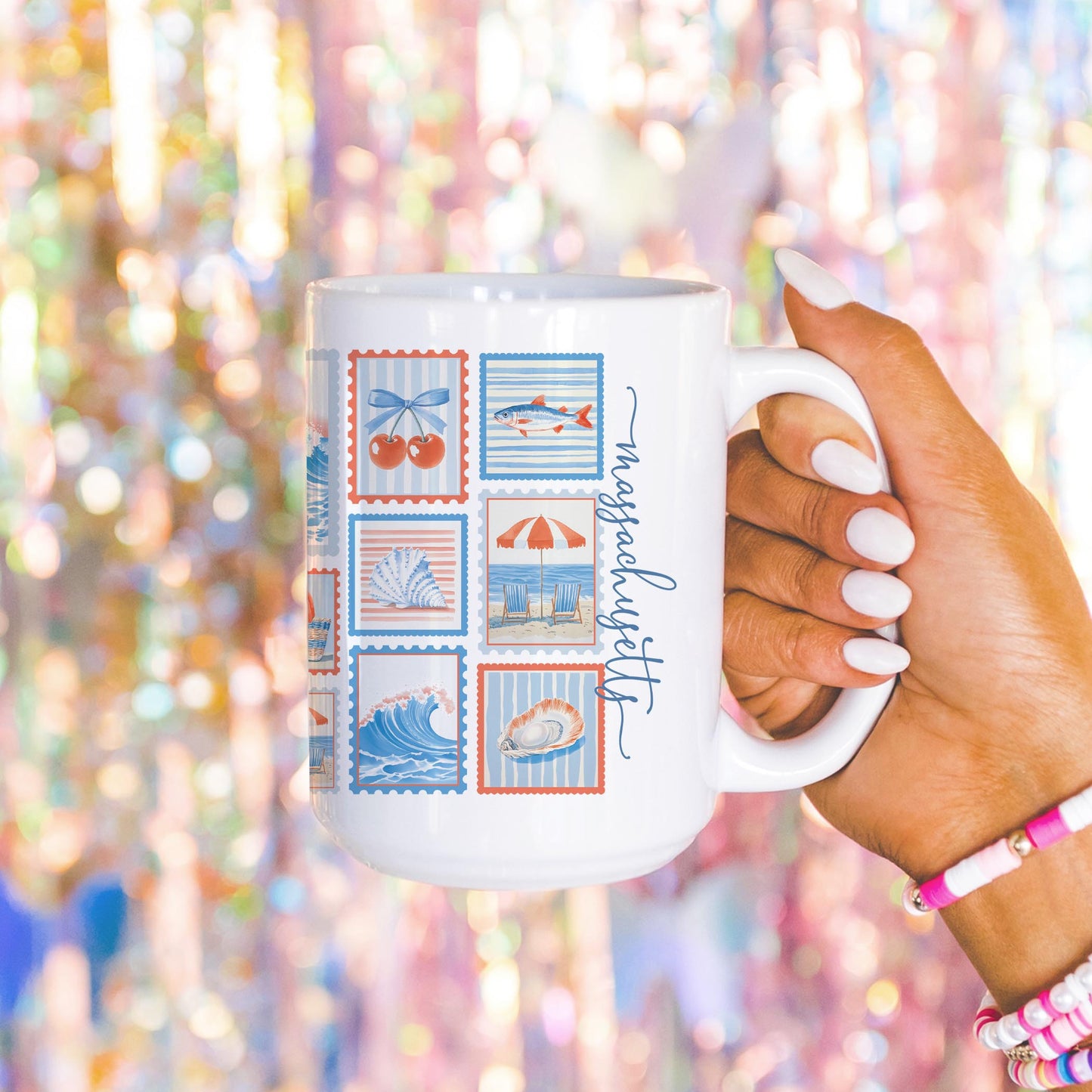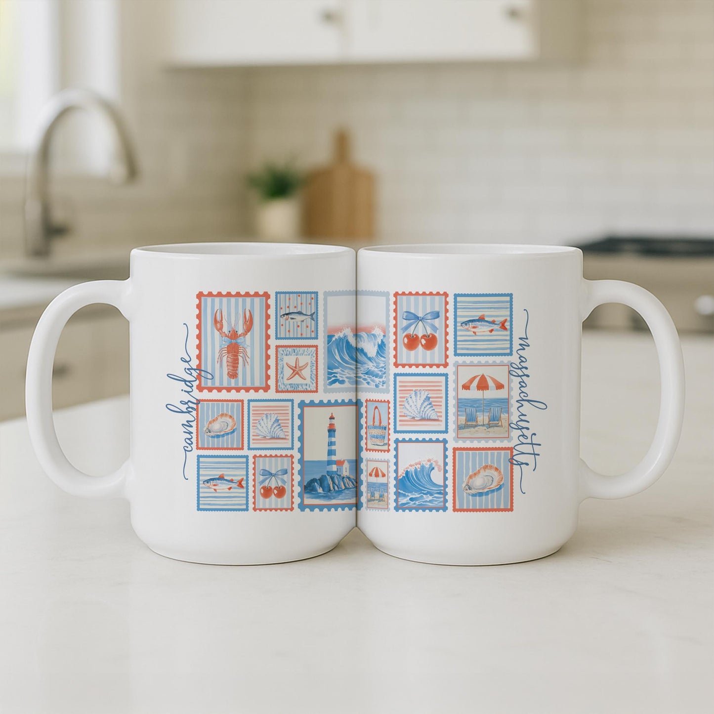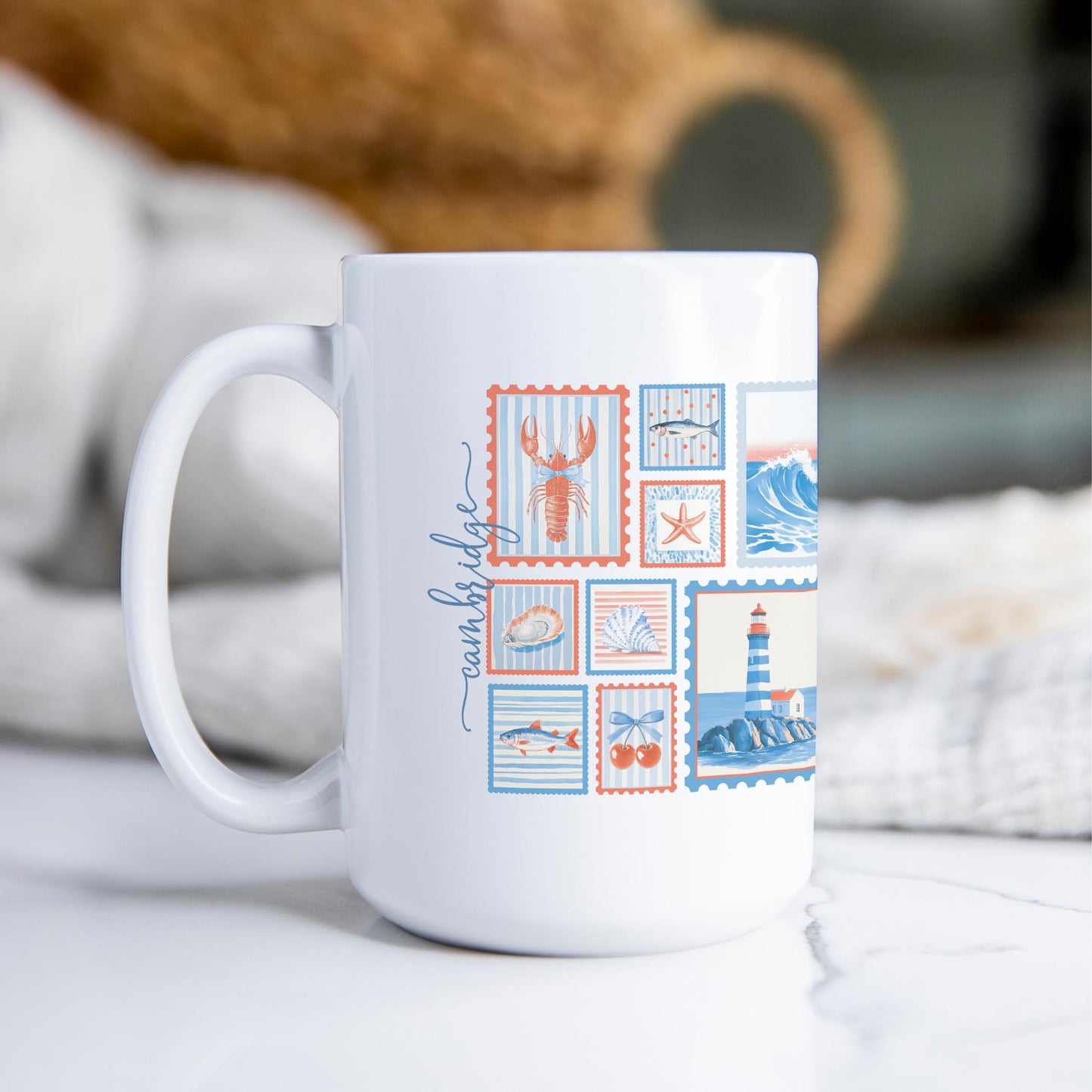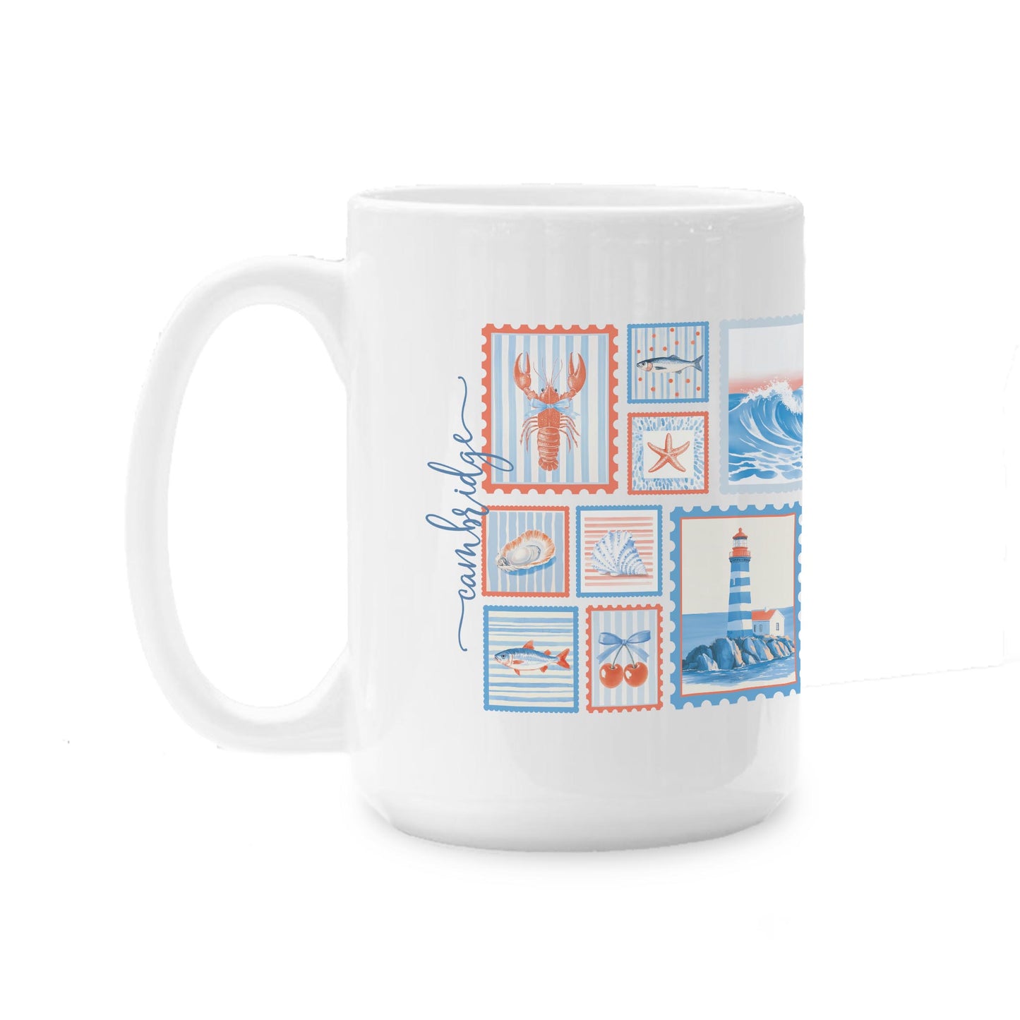 15oz Coffee Mug White-Love+Local New England Tides Stamps