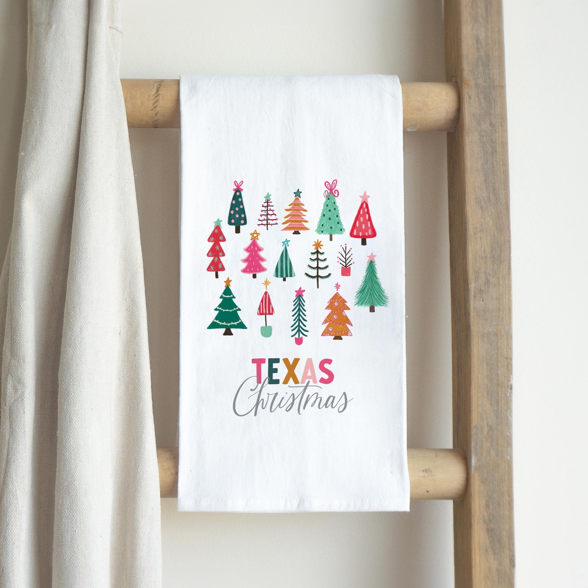 Cotton Tea Towel White-Bright Whimsy Wonderland Texas Christmas