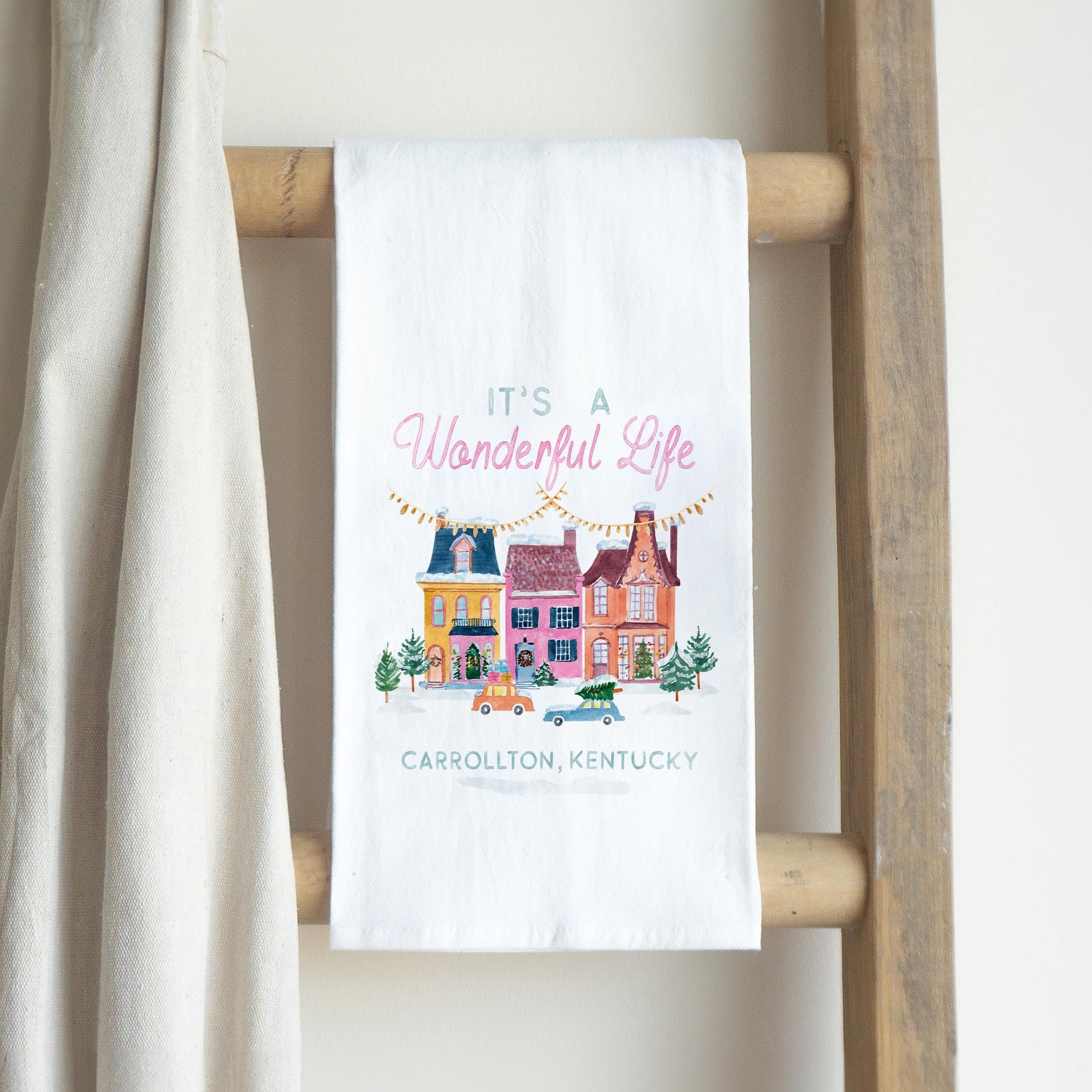 Cotton Tea Towel White-It's A Wonderful Life Carrollton Kentucky