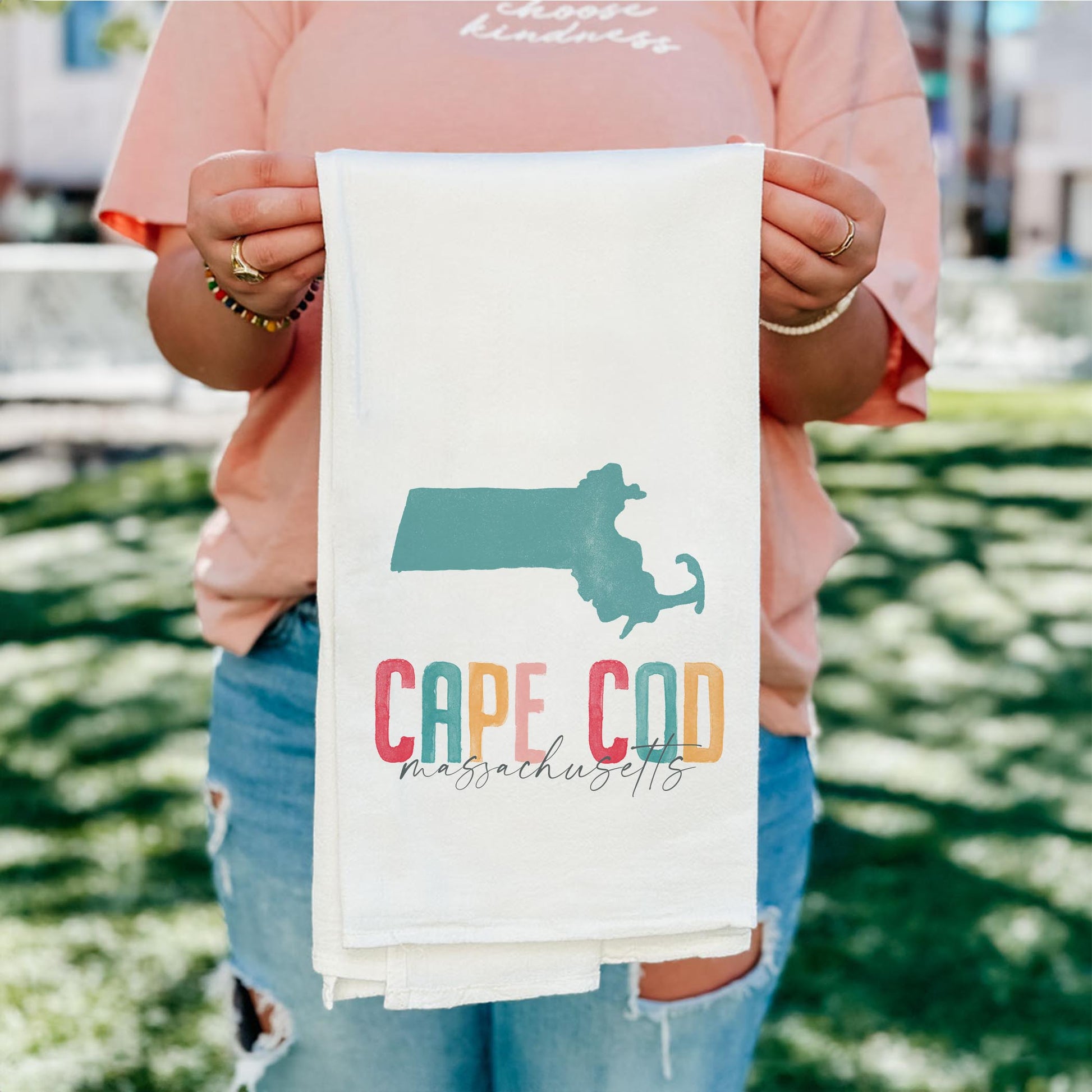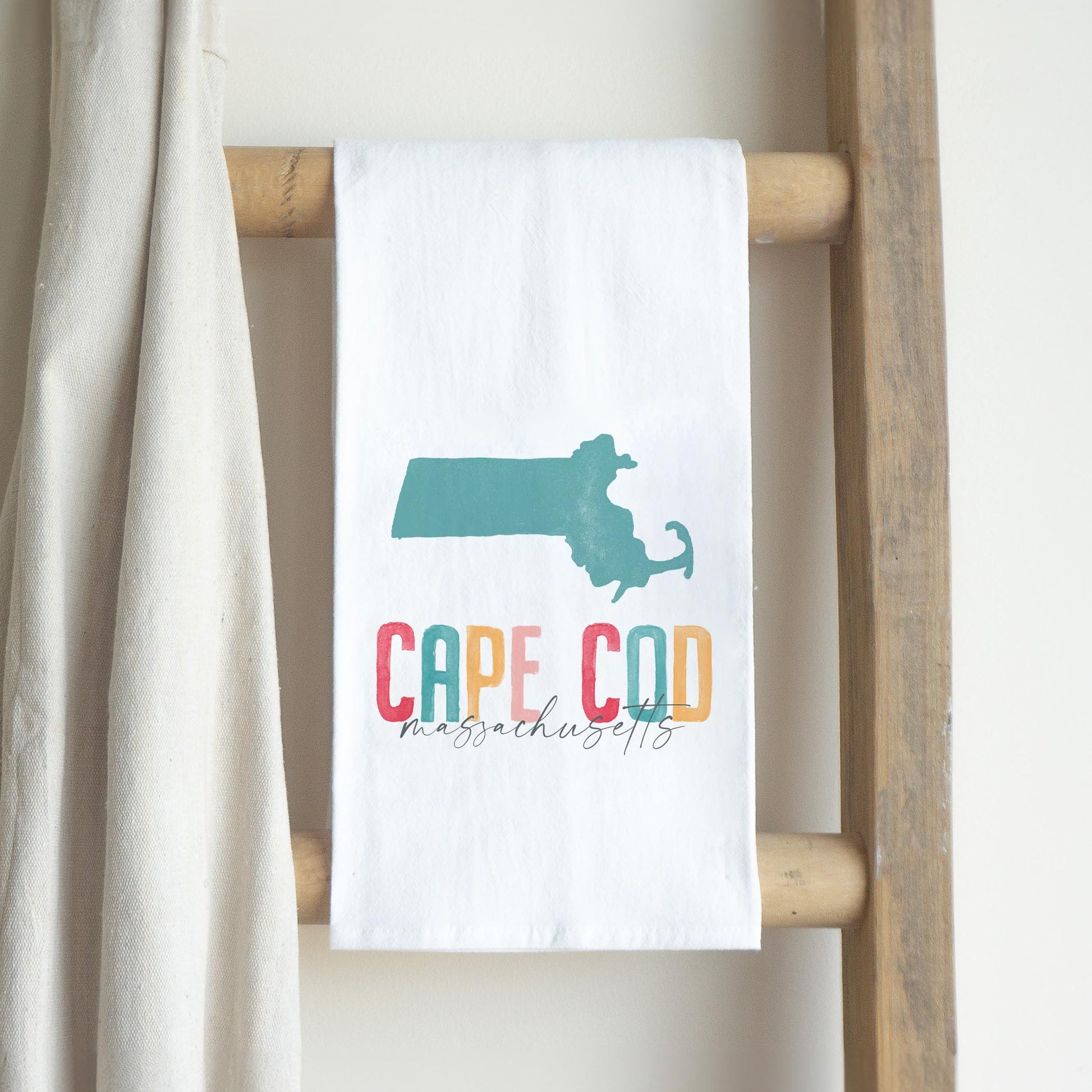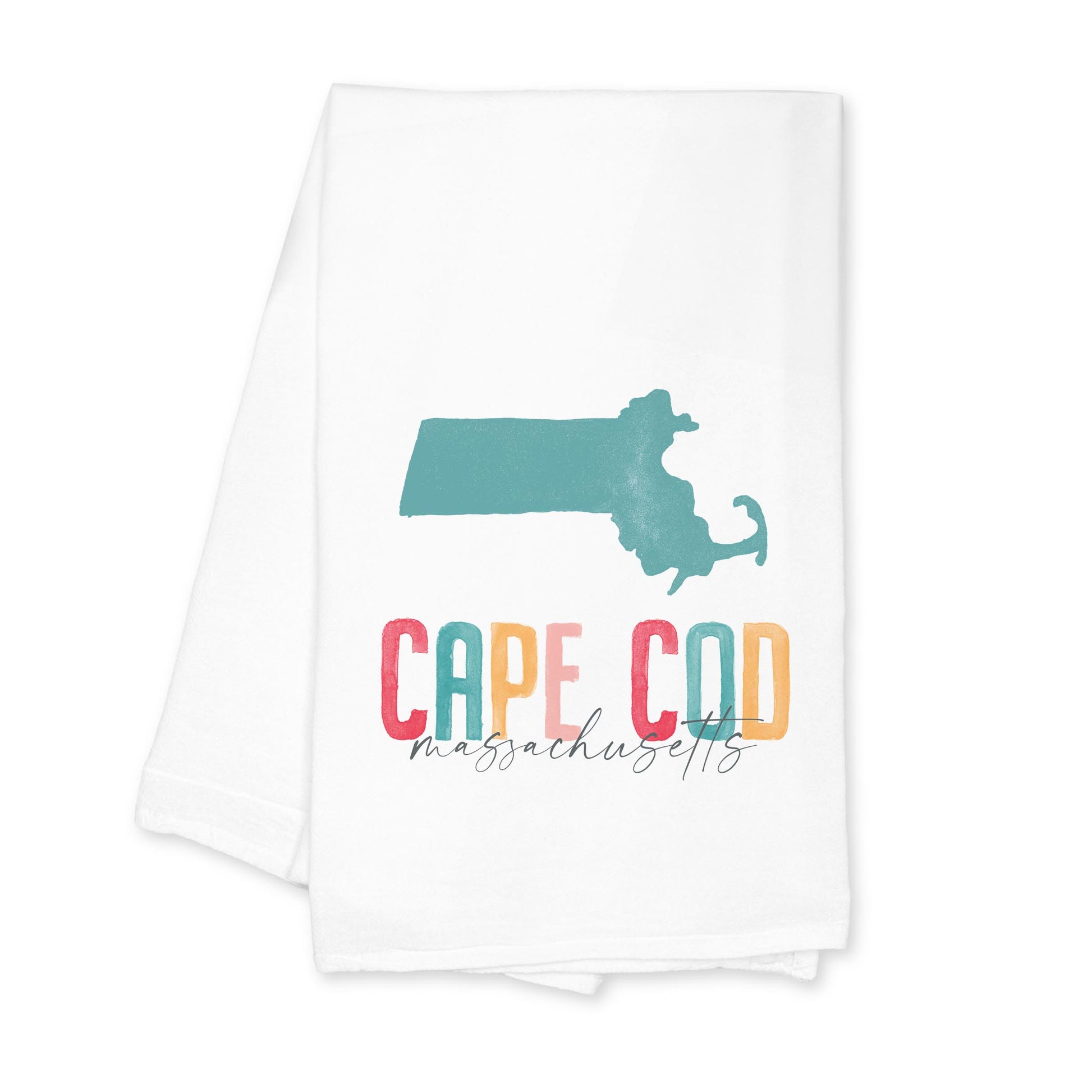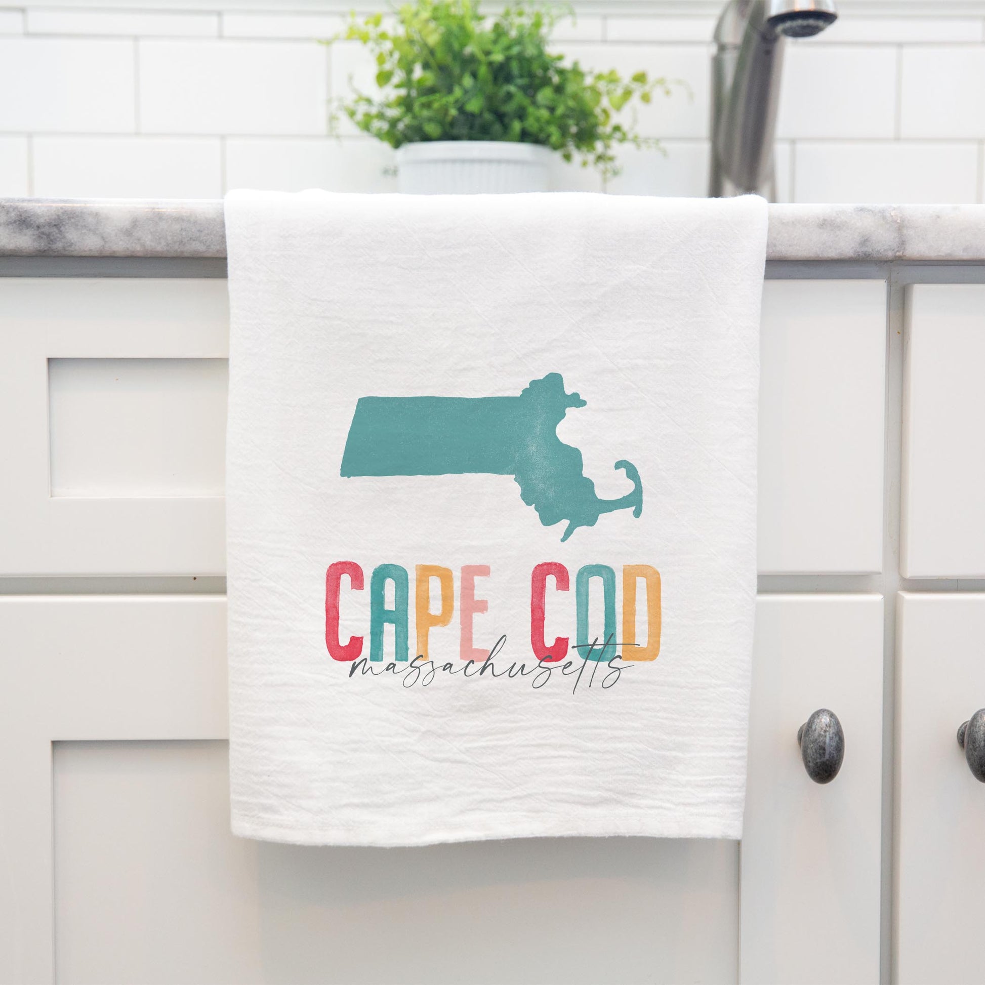 Cotton Tea Towel White-Watercolor City Cape Cod Massachusetts