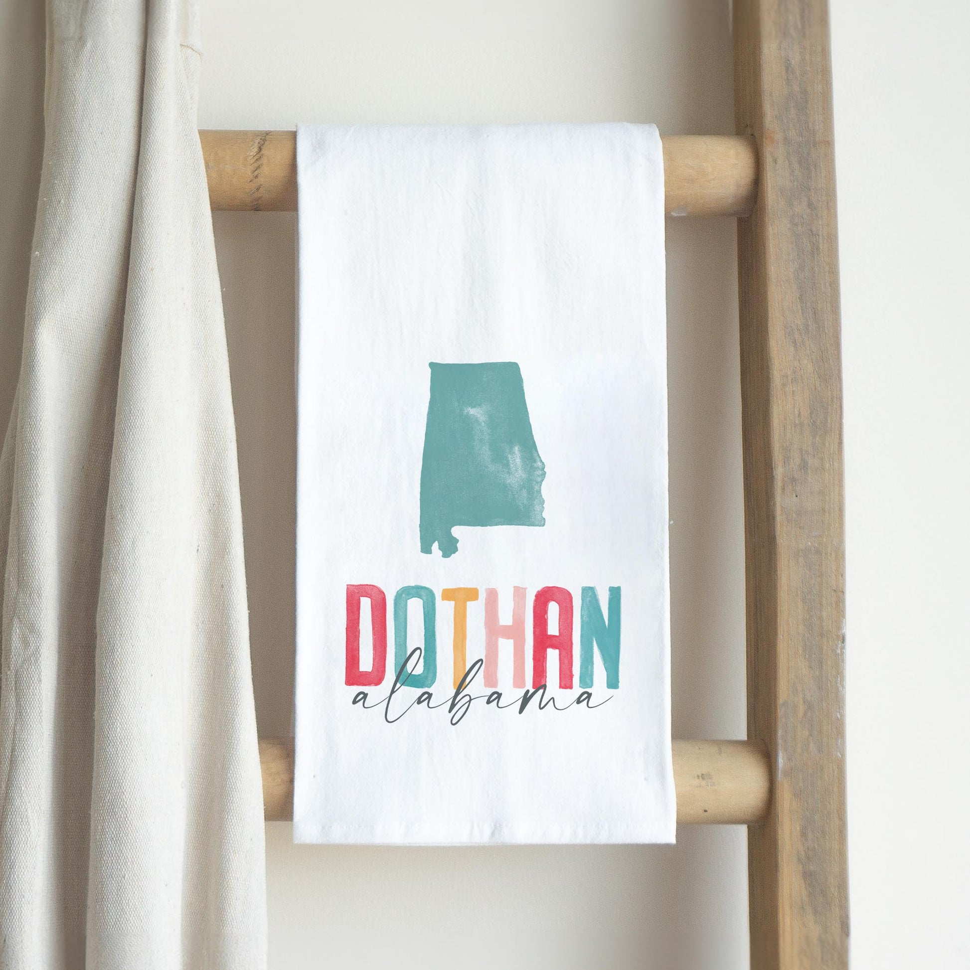 Cotton Tea Towel White-Watercolor City Dothan Alabama