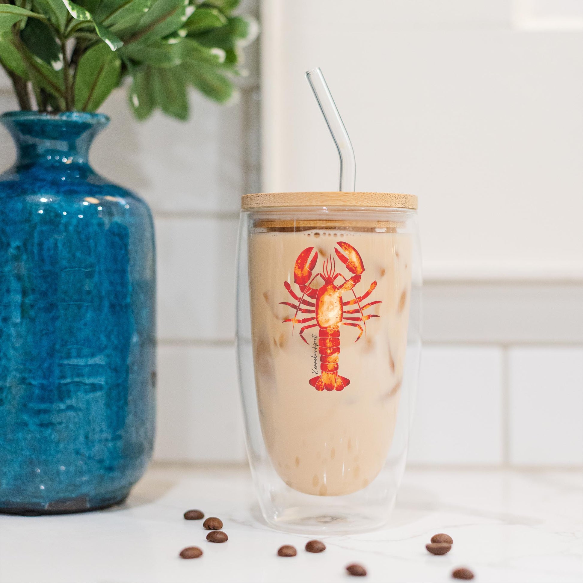 16oz Double Insulated Glass Tumbler-Kennebunkport Maine Orange Lobster