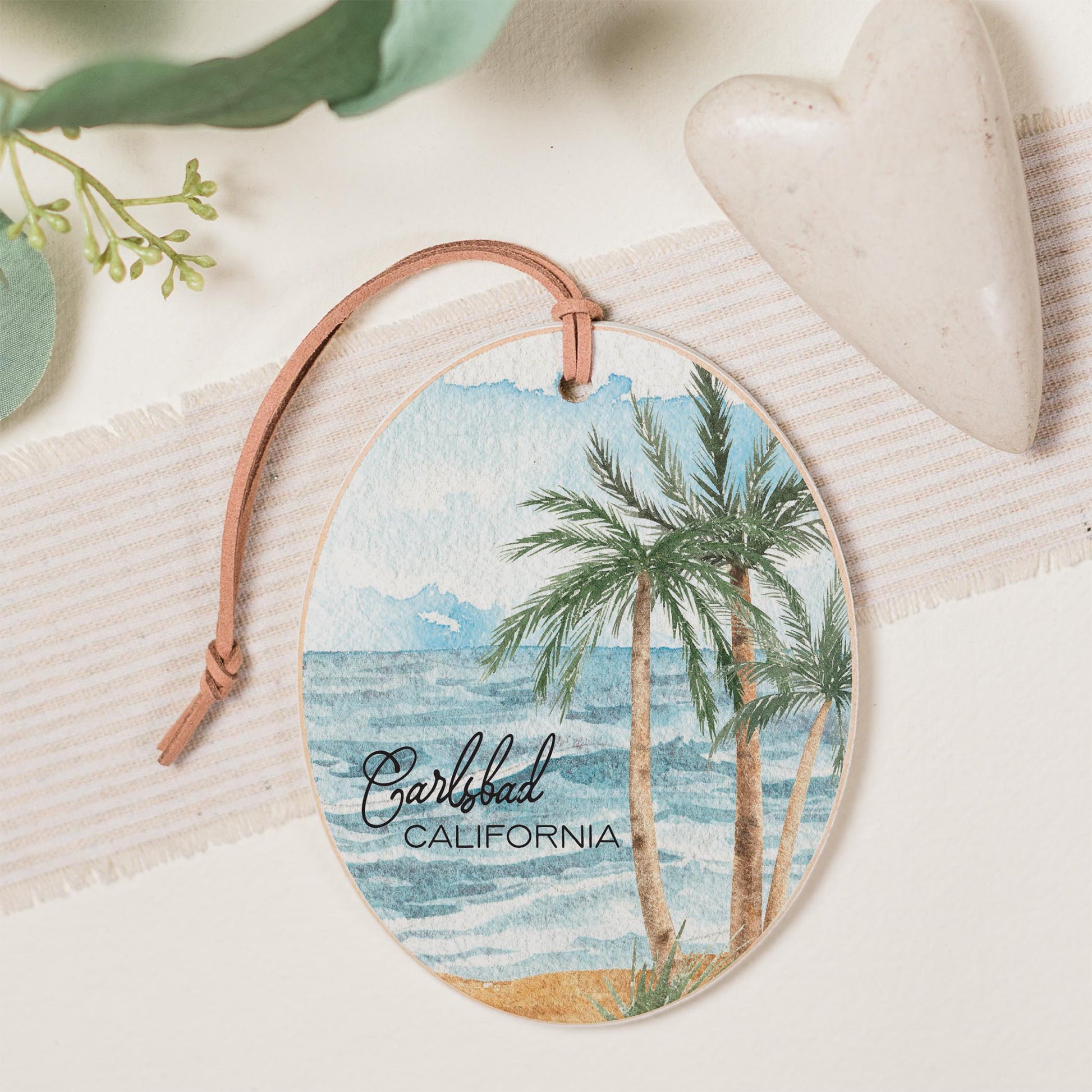 Oval Ornament-Painted Beach Scene Carlsbad California