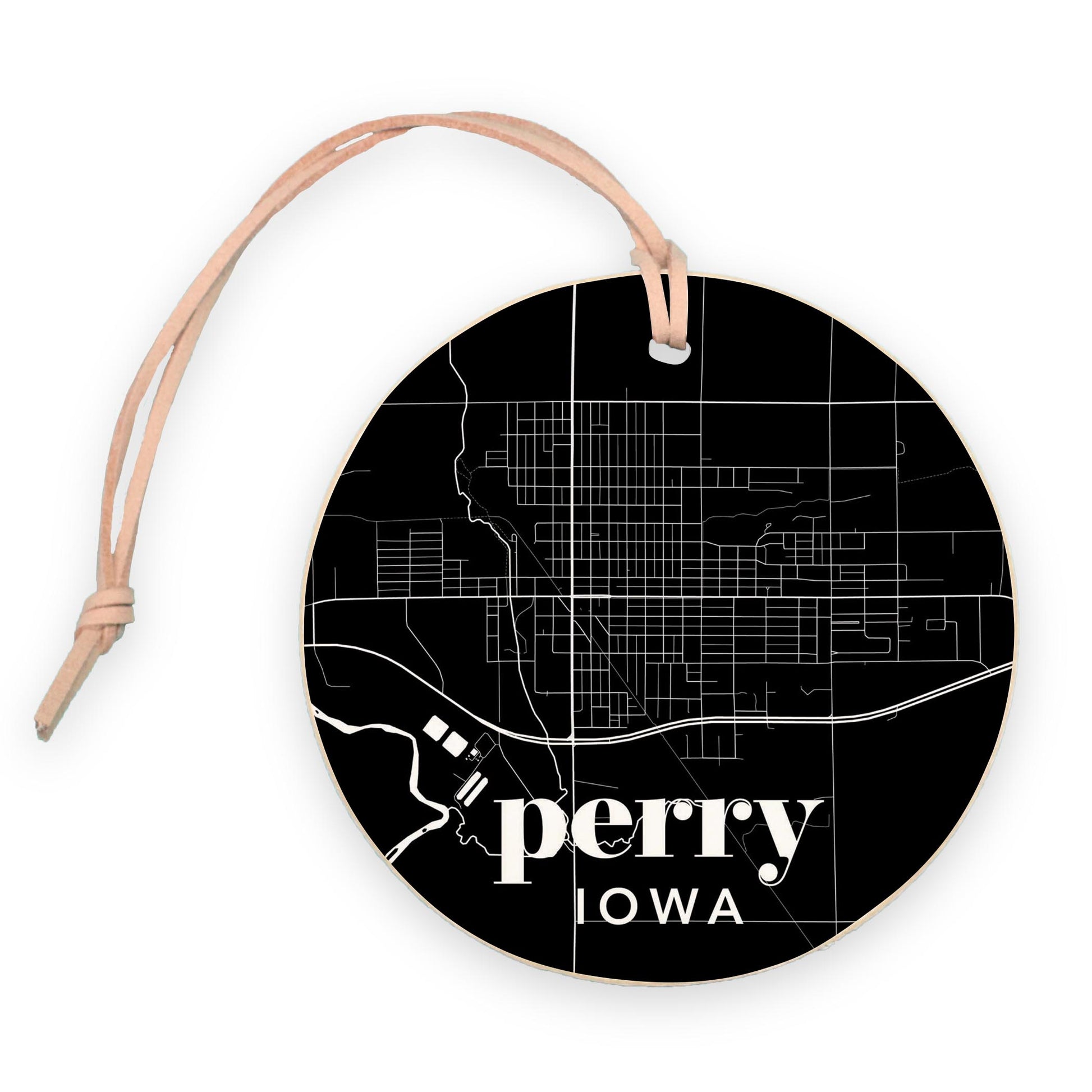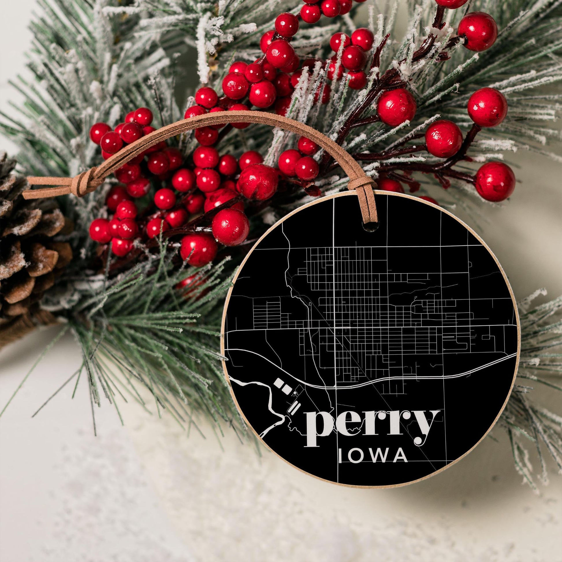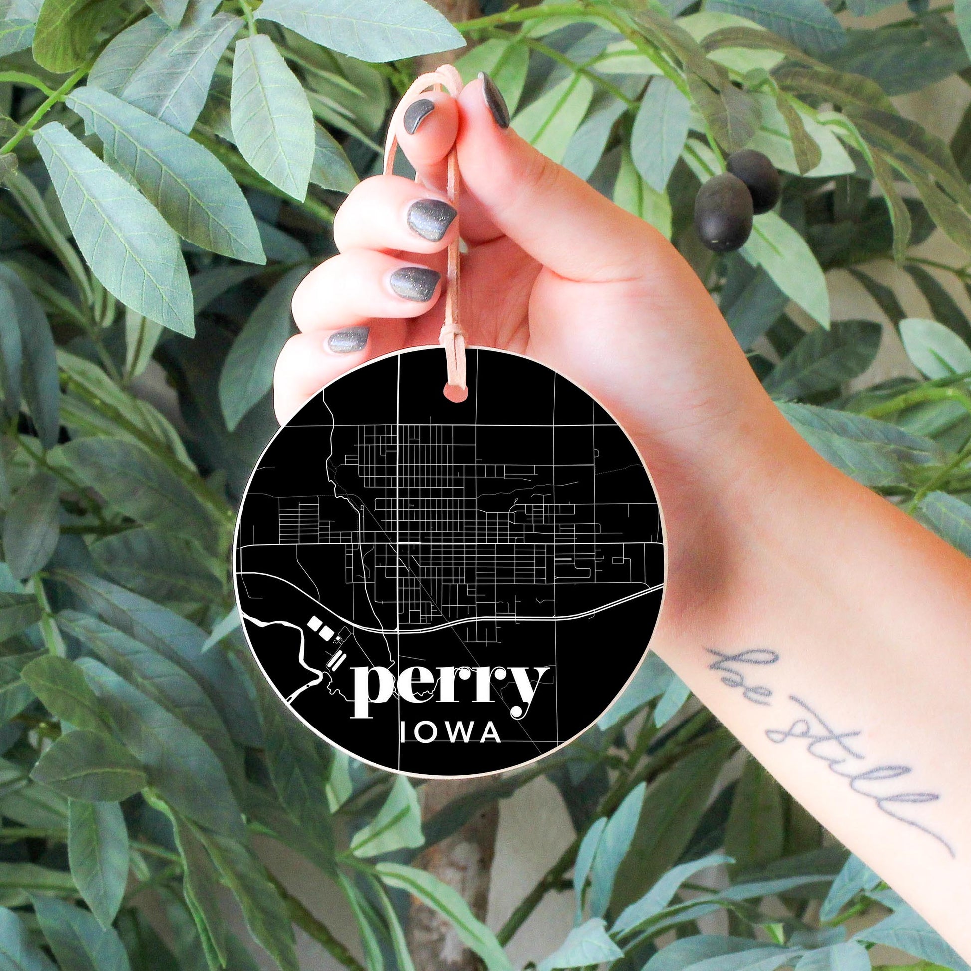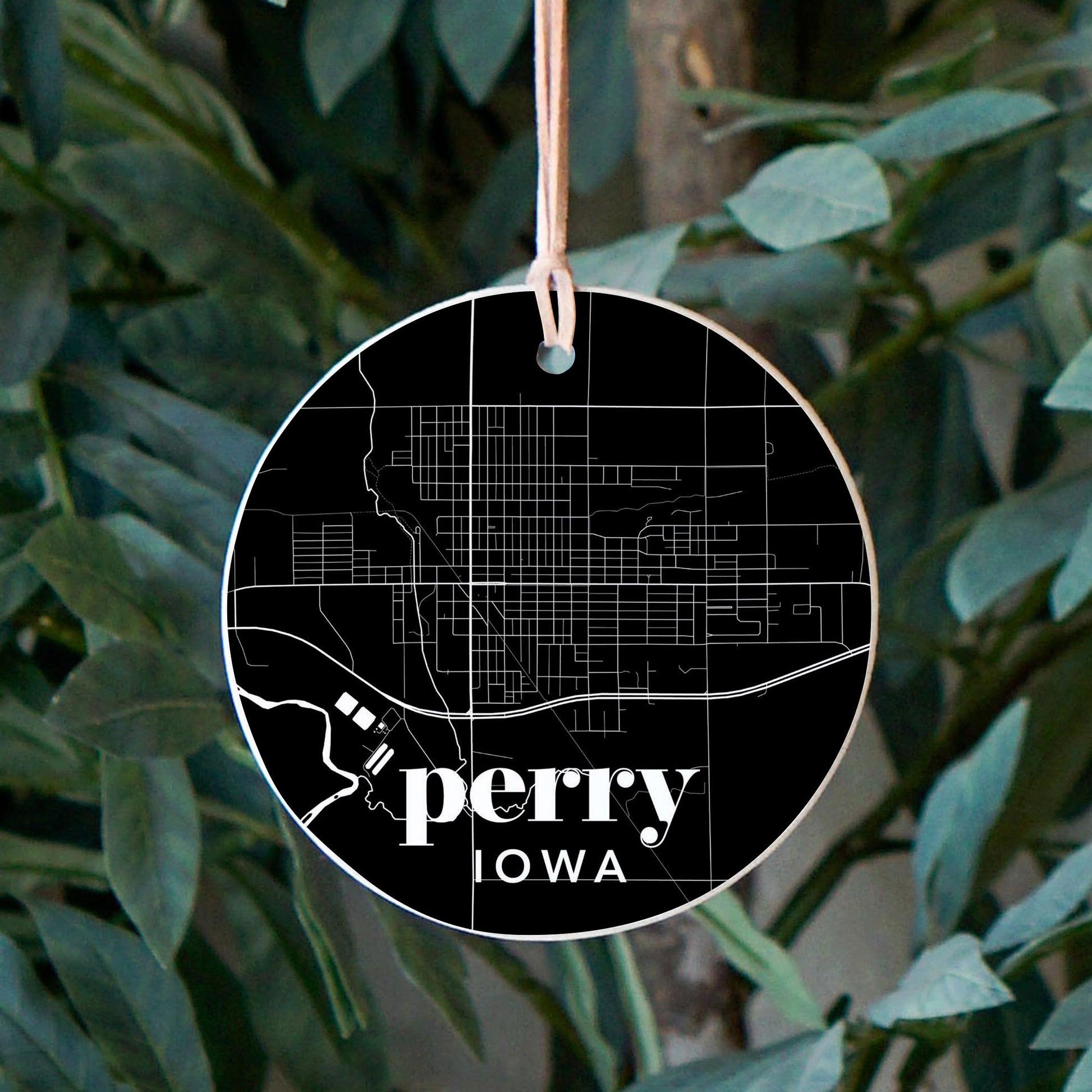 4" Round Ornament-Black & White Dark Map Perry Iowa