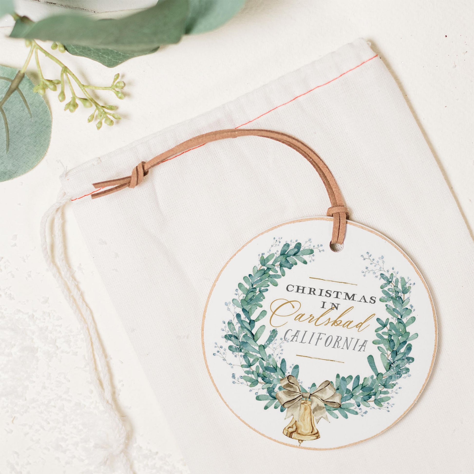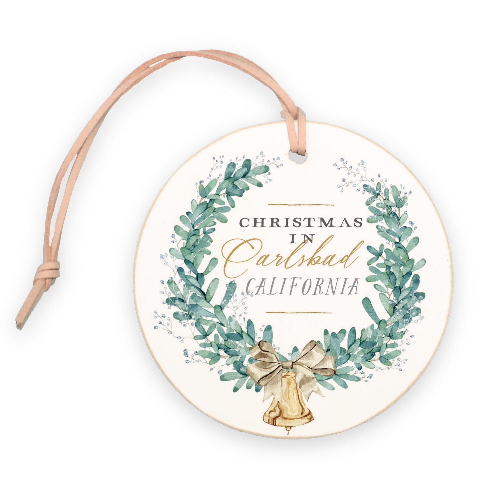 4" Round Ornament-Christmas Wreath Carlsbad California