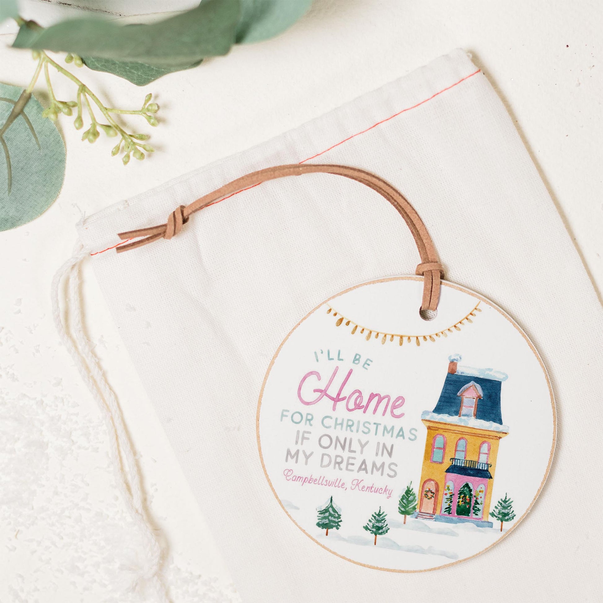 4" Round Ornament-I'll Be Home For Christmas Campbellsville KY